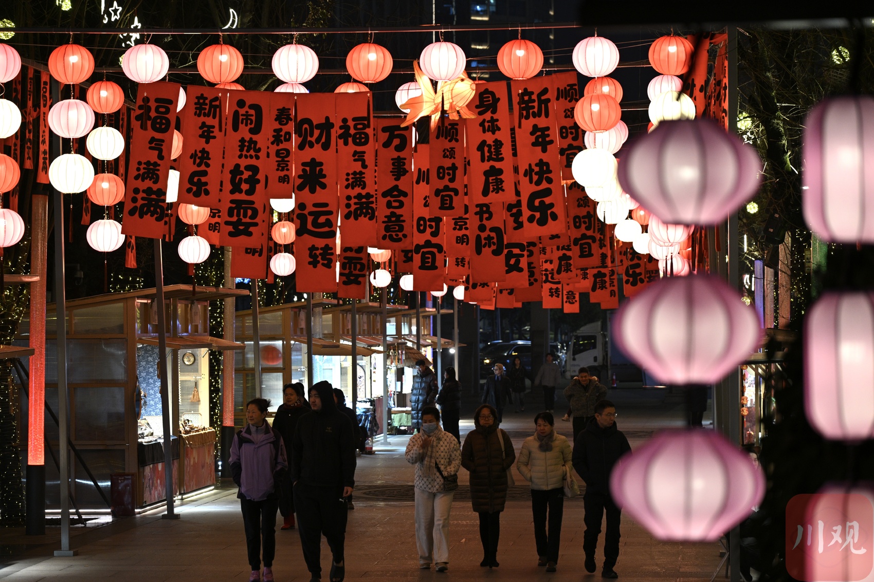 水街祥和喜庆,新春氛围浓。