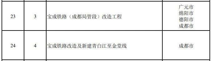 日前,四川省人民政府网站公布了2026年四川省重点项目名单,“宝成铁路改造及新建青白江至金堂线”入选今年新开工的交通基础设施项目。