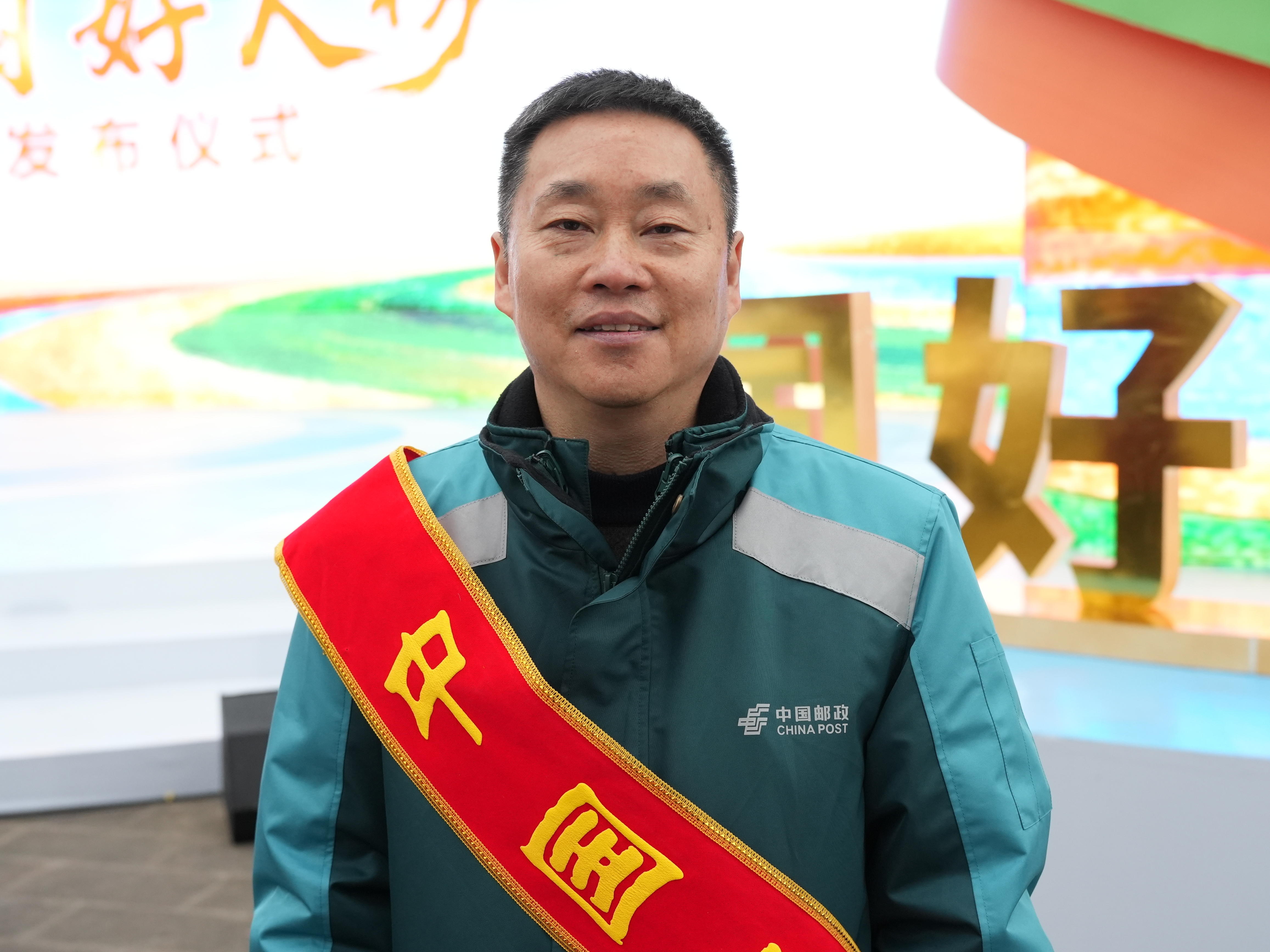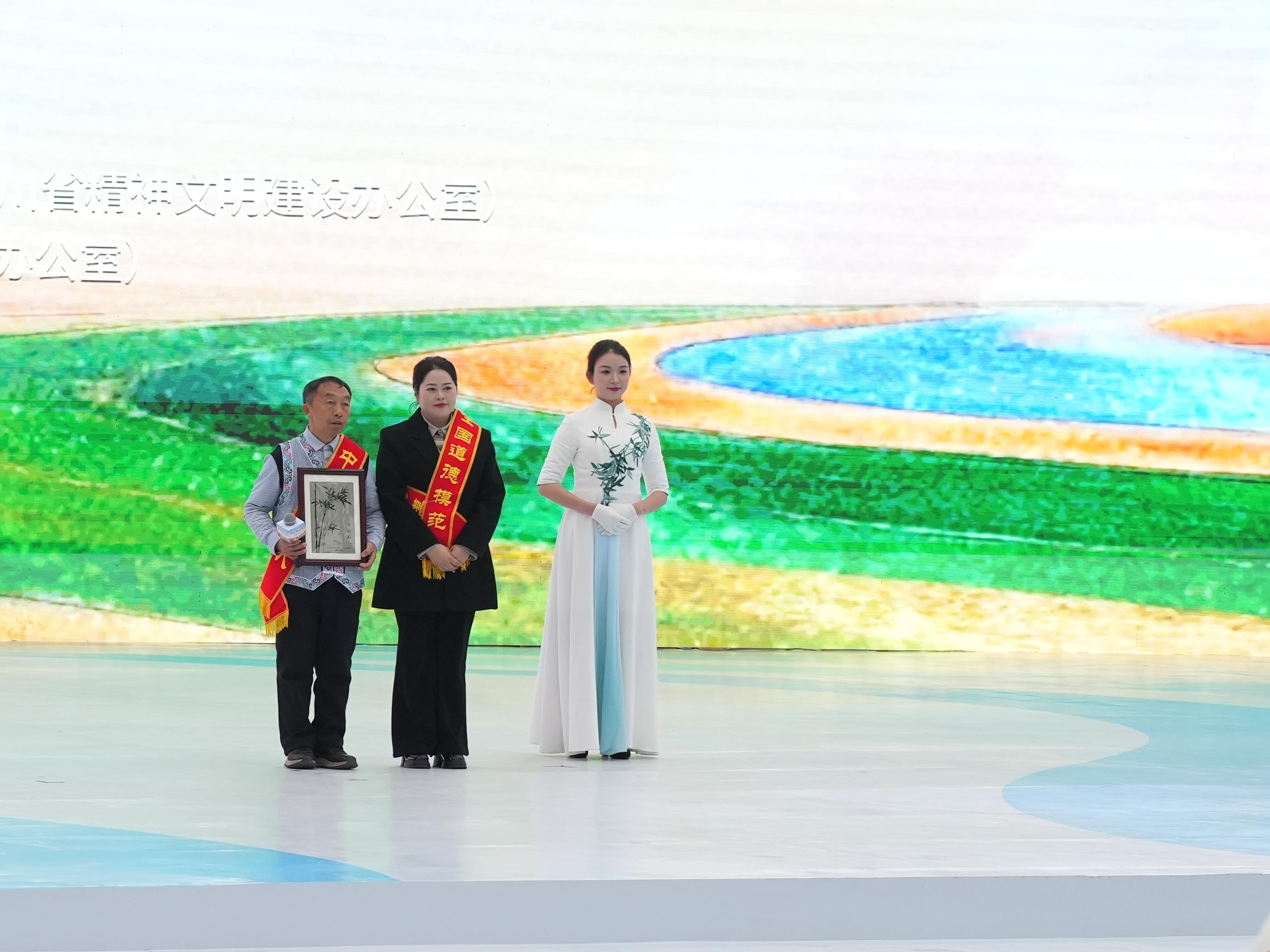 周全弟在宣讲现场抱笔书法。成都市文明办供图
