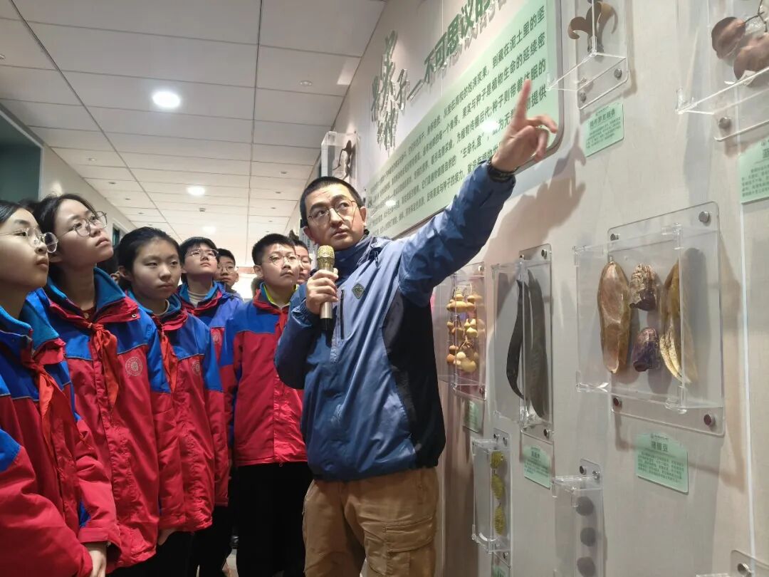 1月22日,西安市经开第三中学的师生们迎来了校园“新地标”——标本走廊。这是秦岭国家植物园与西安市经开第三中学开启的“馆校合作协同育人”创新实践,让课本里的生物知识跳出纸面,把秦岭的生态奥秘搬进校园。图为秦岭国家植物园的专家为孩子们进行现场教学。(西安报业全媒体记者 牛凌 摄)