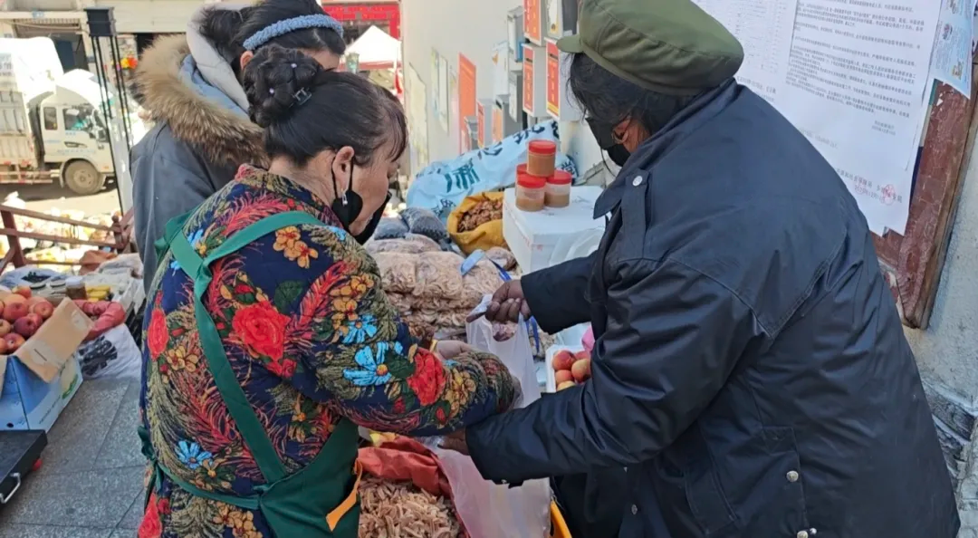 集市上,口感酥脆的油炸果子、质地软糯的柿子干等产品应有尽有,每一种都蕴含着别具一格的制作工艺与独特风味,散发出阵阵诱人香气,满足不同人群的口味偏好。摊位前,人们细致挑选心仪年货,脸上洋溢着欢快笑容。商家们热情介绍自家产品特色,讨价还价声此起彼伏,更增添了节日的欢乐氛围。