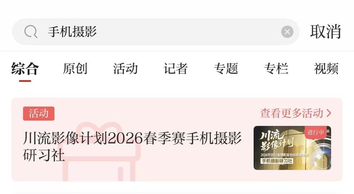 方式三:在川观新闻首页顶部搜索框输入“手机摄影”,点击活动链接即可参与报名。