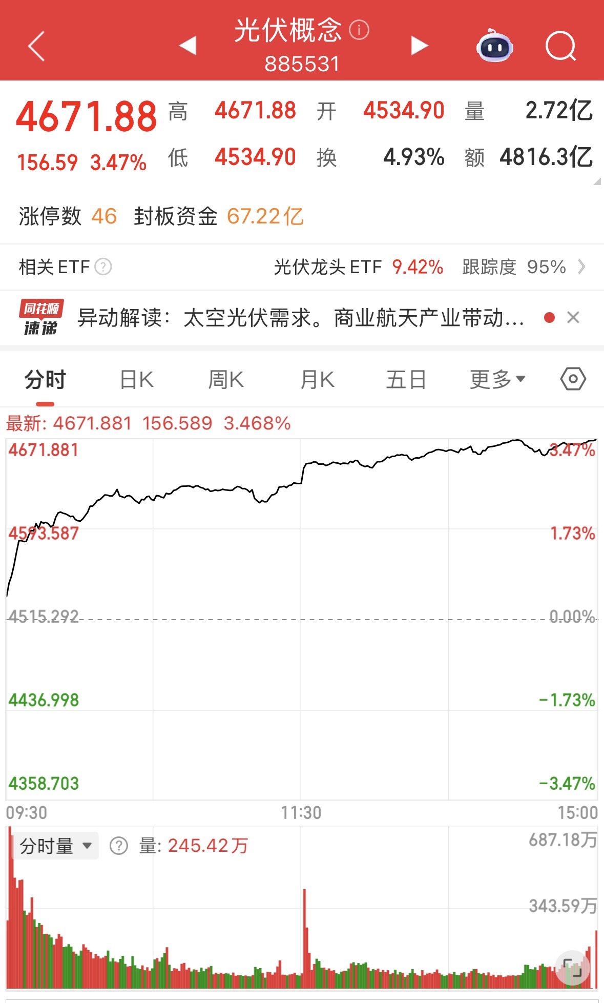 商业航天板块升温,也带动了光伏设备板块上涨,多只成分股涨停。消息面上,1月22日,特斯拉CEO埃隆·马斯克在瑞士达沃斯世界经济论坛年会期间,在与贝莱德CEO拉里·芬克的对谈中明确力挺太空光伏,并披露关键产能规划。