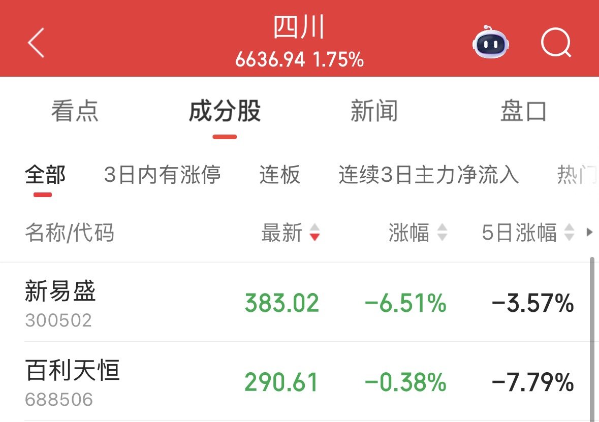 川股板块方面,股价榜第二的百利天恒本周失守300元整数关口,周五最终收报290.61元/股。至此,川股中股价站上300元关口的标的仅剩新易盛独苗,不过该股自去年12月底冲高遇阻后便进入持续回调通道,今年1月以来跌幅已超11%。