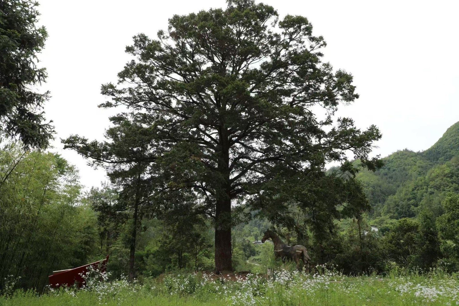 如何让古树文化“活起来”?达州通过打造以通川区张爱萍将军故居“将军树”及万源市徐向前元帅“拴马树”为地标的红色教育综合体,将生态保护与文旅融合。“栓马树”铁坚油杉,2014年被评选为四川五株人文古树之一,2015年入选中华百株人文古树保健(护)名录。(达州市林业局供图)