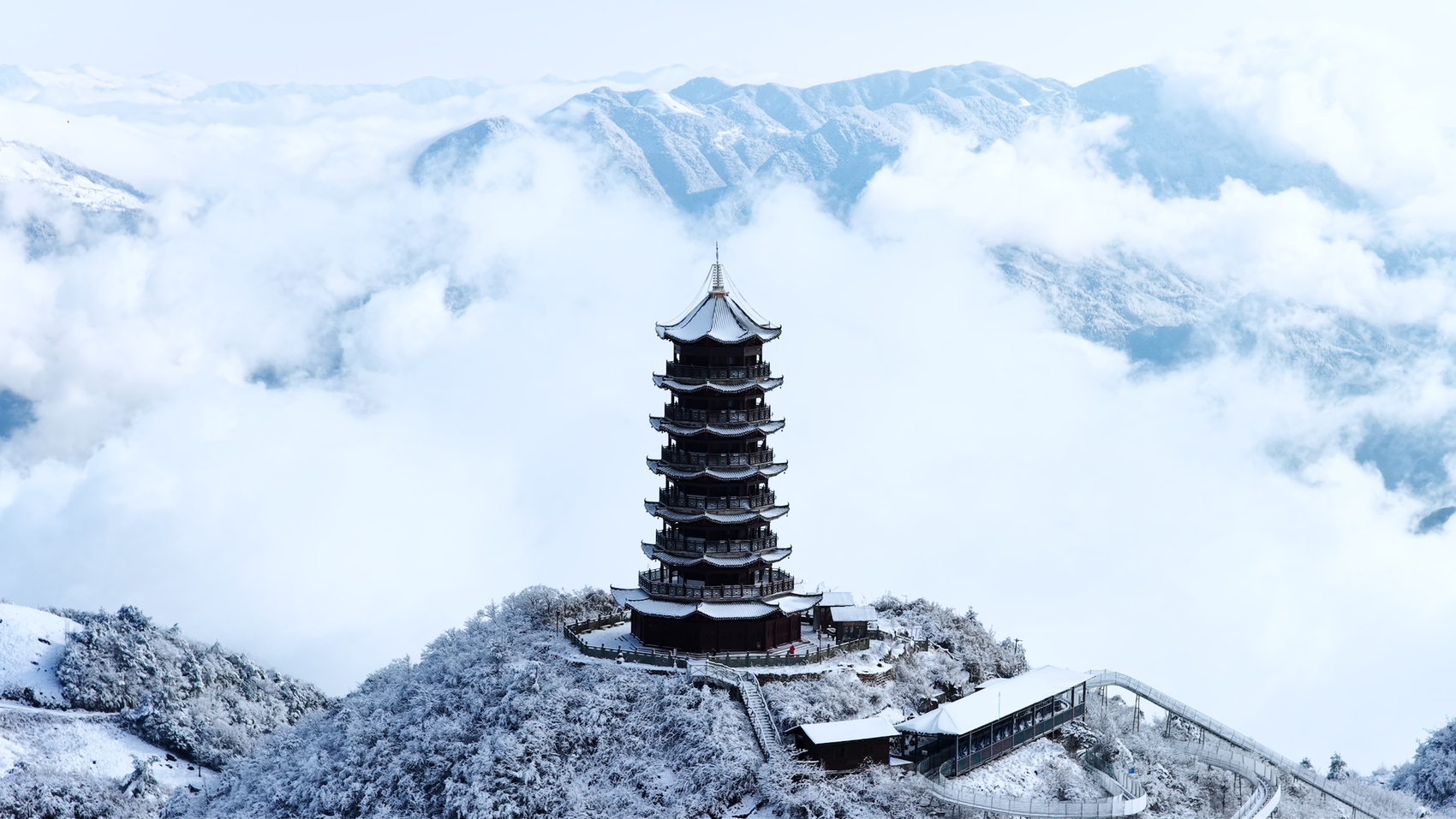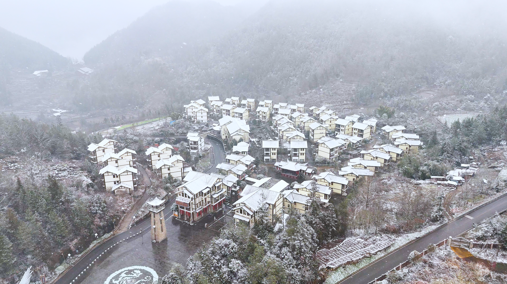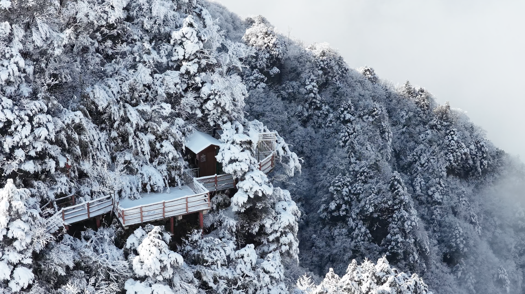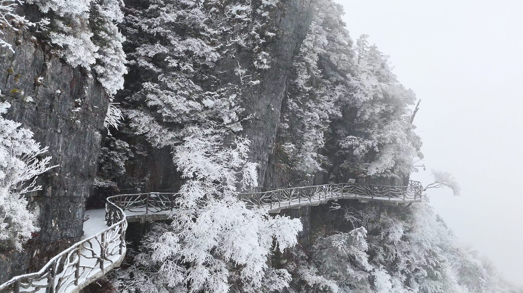 航拍镜头下,皑皑白雪覆盖着连绵的山脊,峡谷间云雾缭绕,雾凇、冰挂晶莹剔透,与奇峰怪石相映成趣。罗盘顶、桃溪谷、桑树坪等核心景点均披上厚厚“雪被”,栈道、观景台、原始森林在白雪点缀下更显诗意。阳光洒落时,雪地泛起粼粼银光;云雾升腾处,山峦若隐若现,形成独特的“云端雪境”奇观。景区工作人员介绍,目前已加强栈道防滑、提供暖心姜茶等服务,并推出冬季旅游优惠措施,确保游客安全、舒适地享受这场冬日盛景。