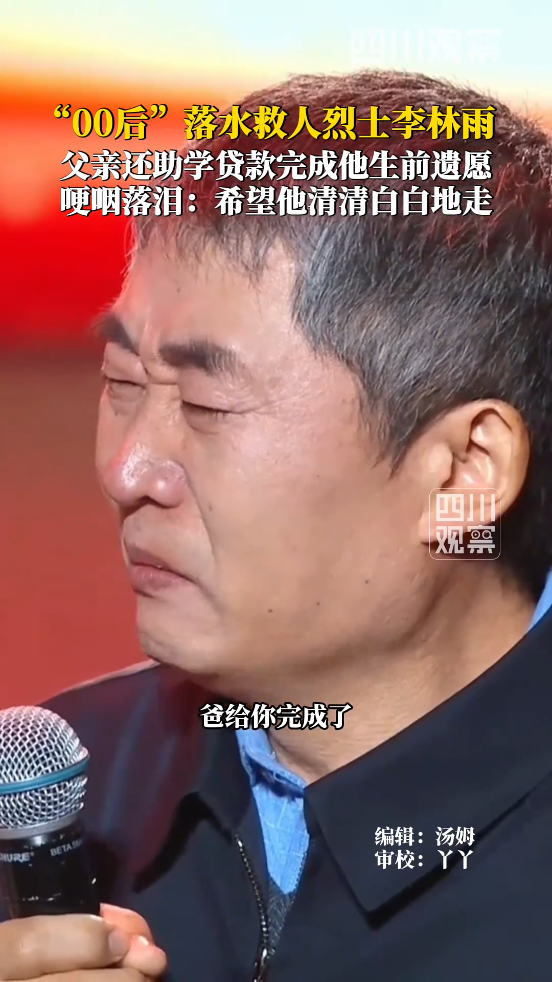 1月22日,四川成都。“德耀中华·榜样在身边”主题活动。“00后”烈士李林雨一家三代从军,他奋不顾身纵身一跃的壮烈瞬间,感动千万网友。爸爸提起儿子泪目:生前最后一通电话提到发工资就能还清助学贷款了,你在世上心心念念的心愿,爸给你完成了……