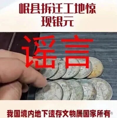 近日,有网民发布“岷县一拆迁工地挖出银元”等图文视频,并有部分自媒体用户为博取流量,恶意拼接展示挖出银元的视频图片,造成不明真相的群众盲目跟风并聚集挖掘。