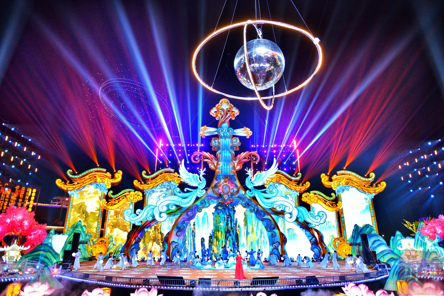 远观气势如虹的“华夏鲲鹏”灯组。