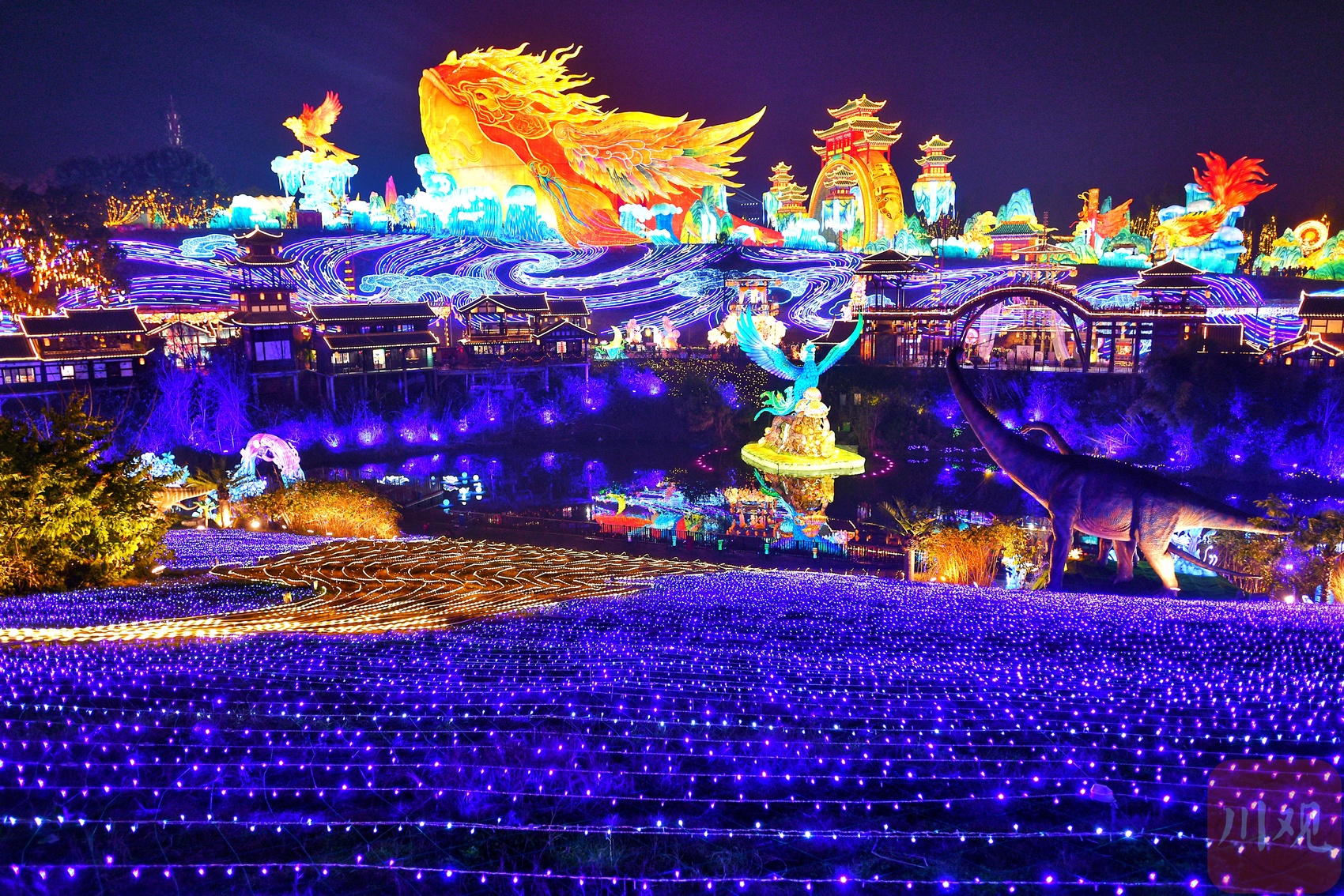自贡国际恐龙灯会亮灯了。
