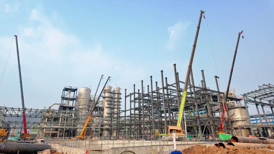 福华新材料一体化产业园的中氟泰华20万吨/年双氧水项目建设现场