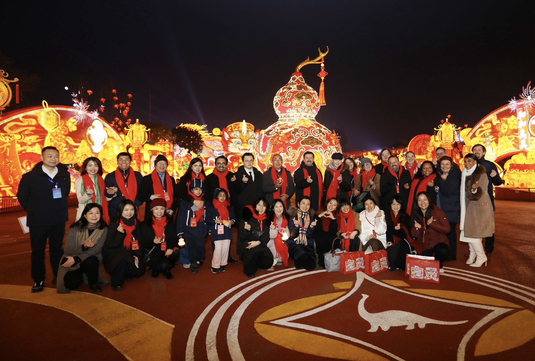 1月23日晚,第32届自贡国际恐龙灯会亮灯仪式暨全省迎春文旅促消费活动在自贡·中华彩灯大世界盛大启幕。奥地利、澳大利亚、巴西、西班牙、越南、德国、法国、匈牙利、巴基斯坦、韩国、缅甸、土耳其、智利等13个国家驻川、渝领事机构官员组团而来,在流光溢彩中感受四川的文化魅力与开放活力。