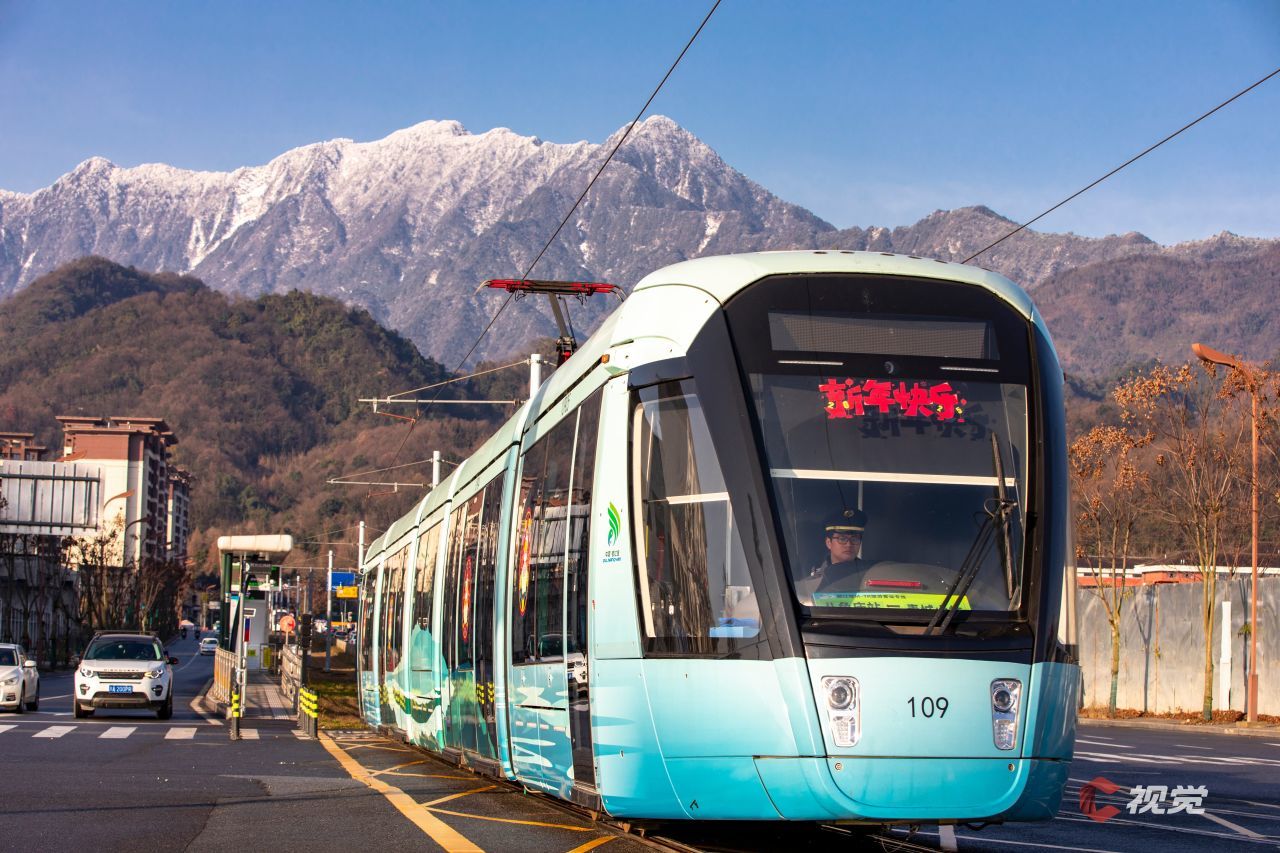 1月11日,临近新年,雪山之下,都江堰轨道旅游列车带着新年的问候缓缓驶来。C视觉签约摄影师 王庆新