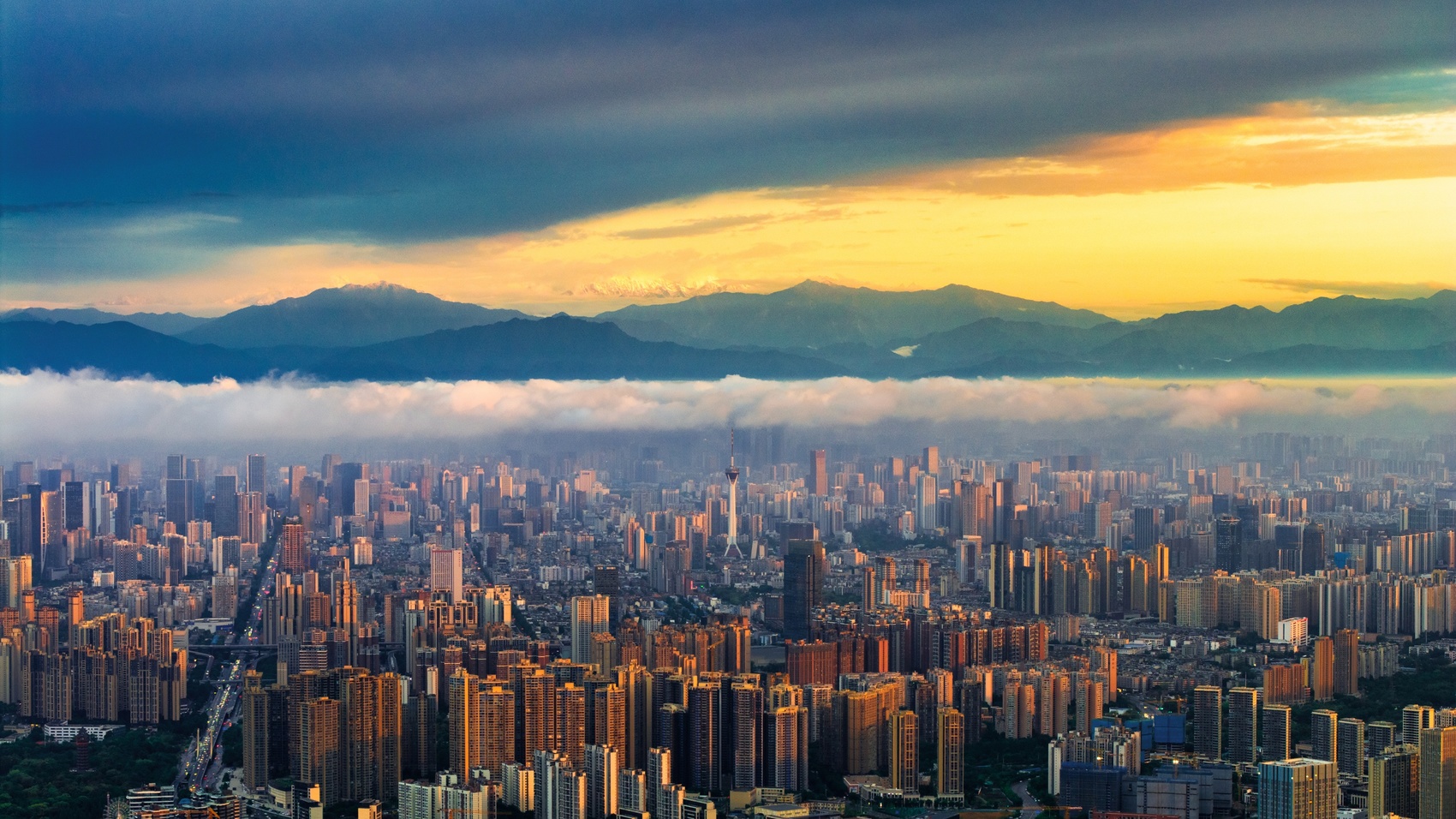 5月5日,“开山节”来临,朝霞金光劈开云雾,绵延的雪山展露真颜,与城市天际线一起共同构成公园城市的美丽画卷。C视觉签约摄影师 张翔升
