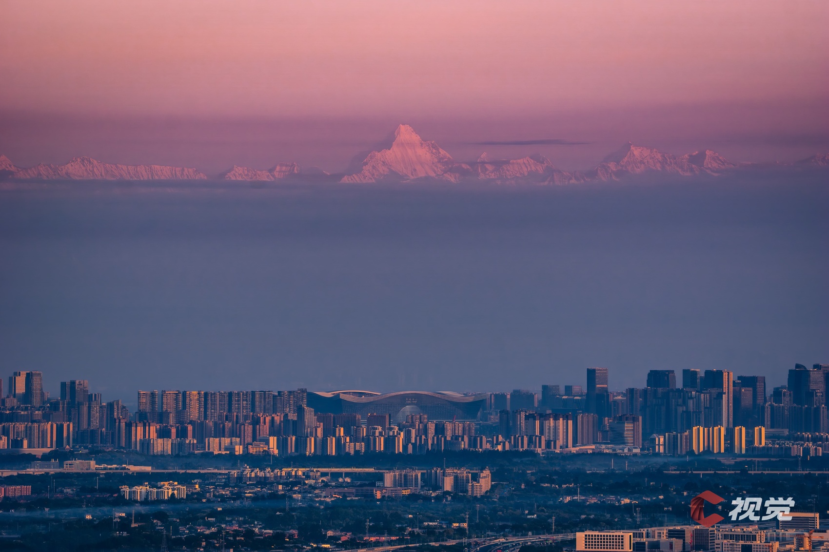 7月11日,从成都市中心天府广场,遥望四姑娘山幺妹峰。C视觉签约摄影师 杜森