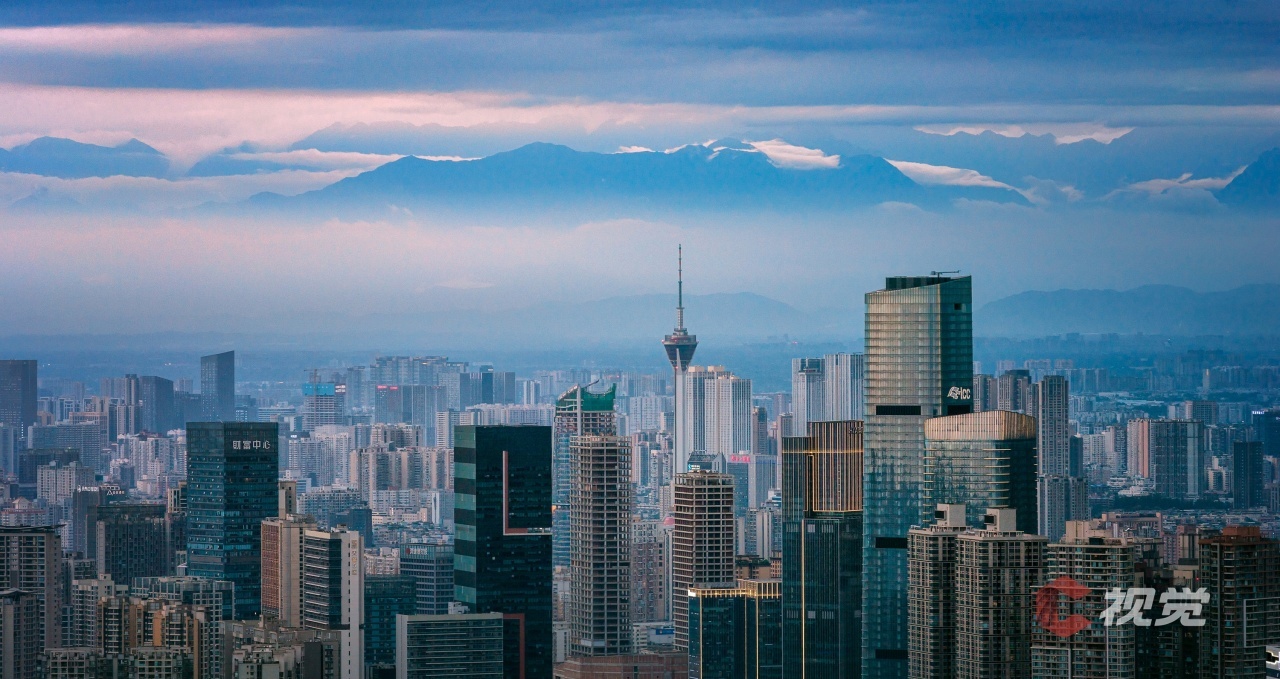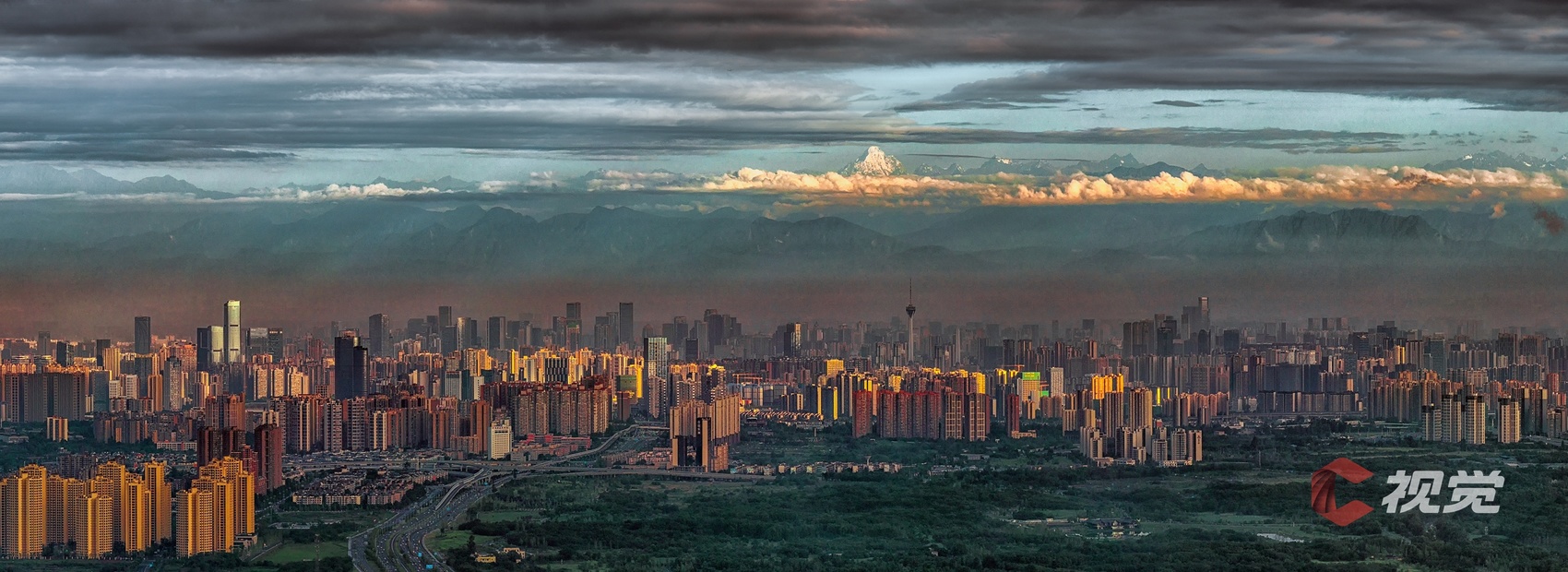 7月20日傍晚,雨后天晴的成都天气通透度良好,雪山在城市云端显露。C视觉签约摄影师 沈军