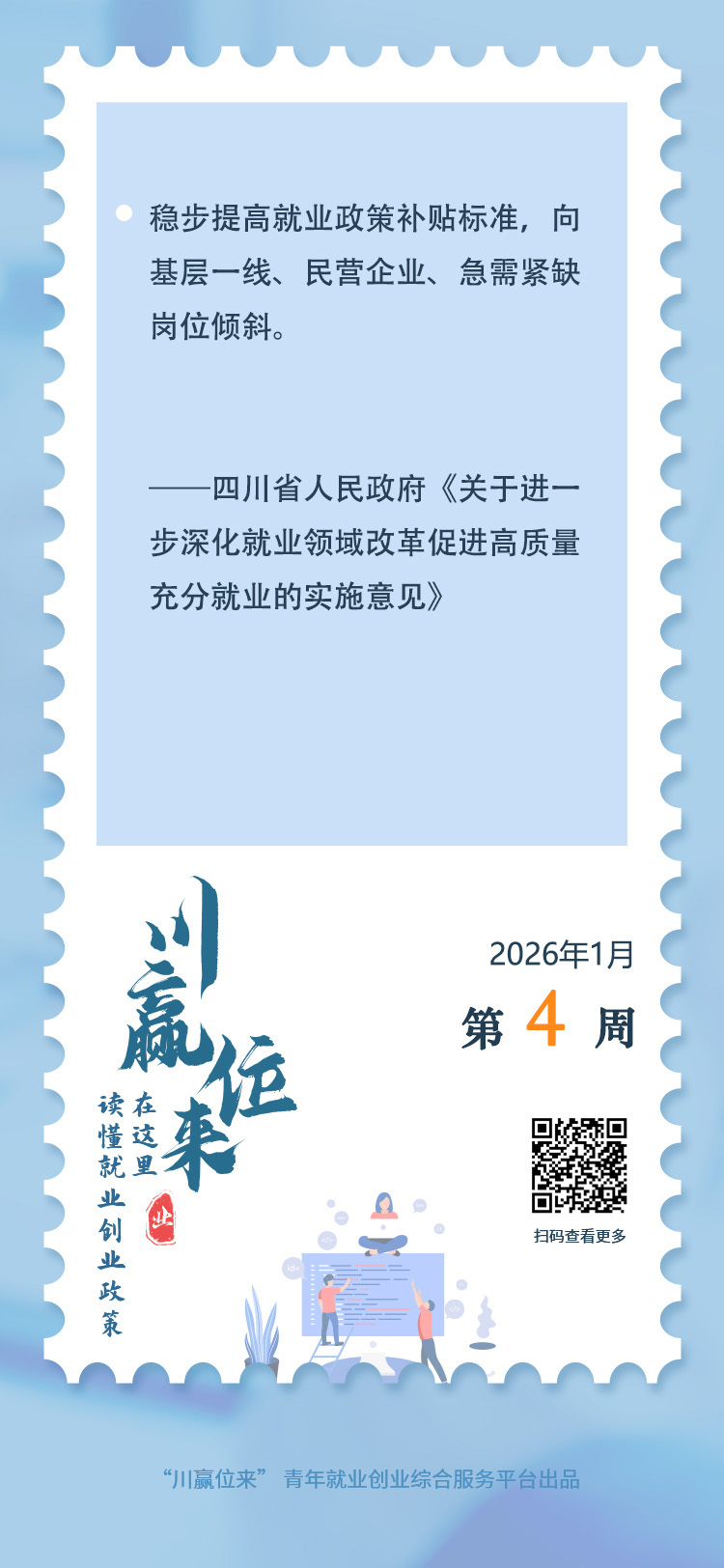 四川省人民政府日前出台的《关于进一步深化就业领域改革促进高质量充分就业的实施意见》明确提出,稳步提高就业政策补贴标准,向基层一线、民营企业、急需紧缺岗位倾斜。
