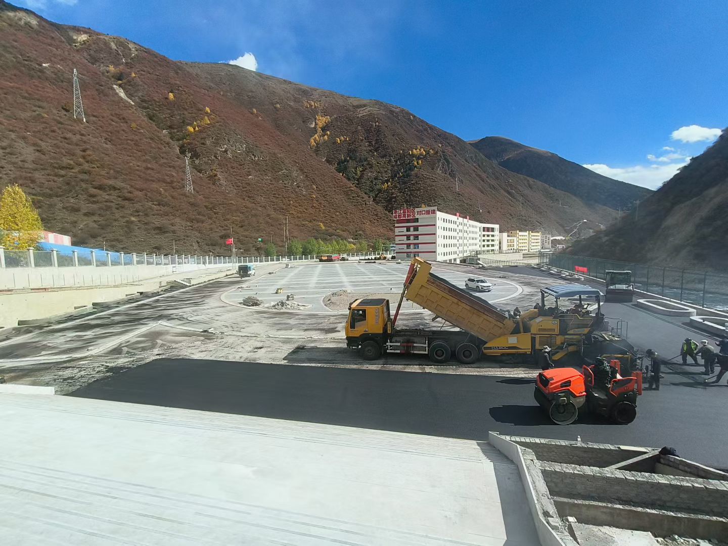德格县新中学操场建设图片。