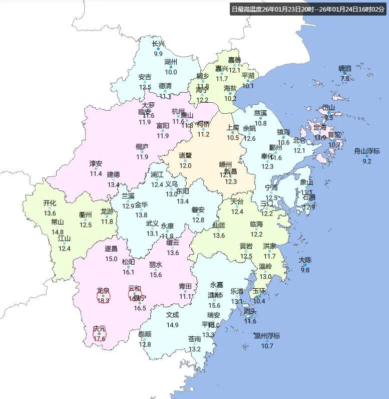 丽水地区今天表现堪称抢眼,气温快速攀升,一举包揽今天全省最高气温前6名,最暖的龙泉,最高气温达18.3度。