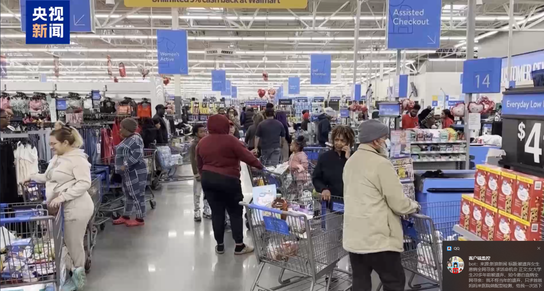 在得克萨斯州,同样有大量居民涌入超市抢购物资,导致货架被一扫而空。当地居民安妮表示:“我个人虽然并不太担心,但仍想建议家中有孩子或老人的家庭,最好能为可能出现的食物供应问题,提前做些准备,适当储备一些额外的新鲜食物。只要电力供应保持稳定,我相信大家都能安然度过。”