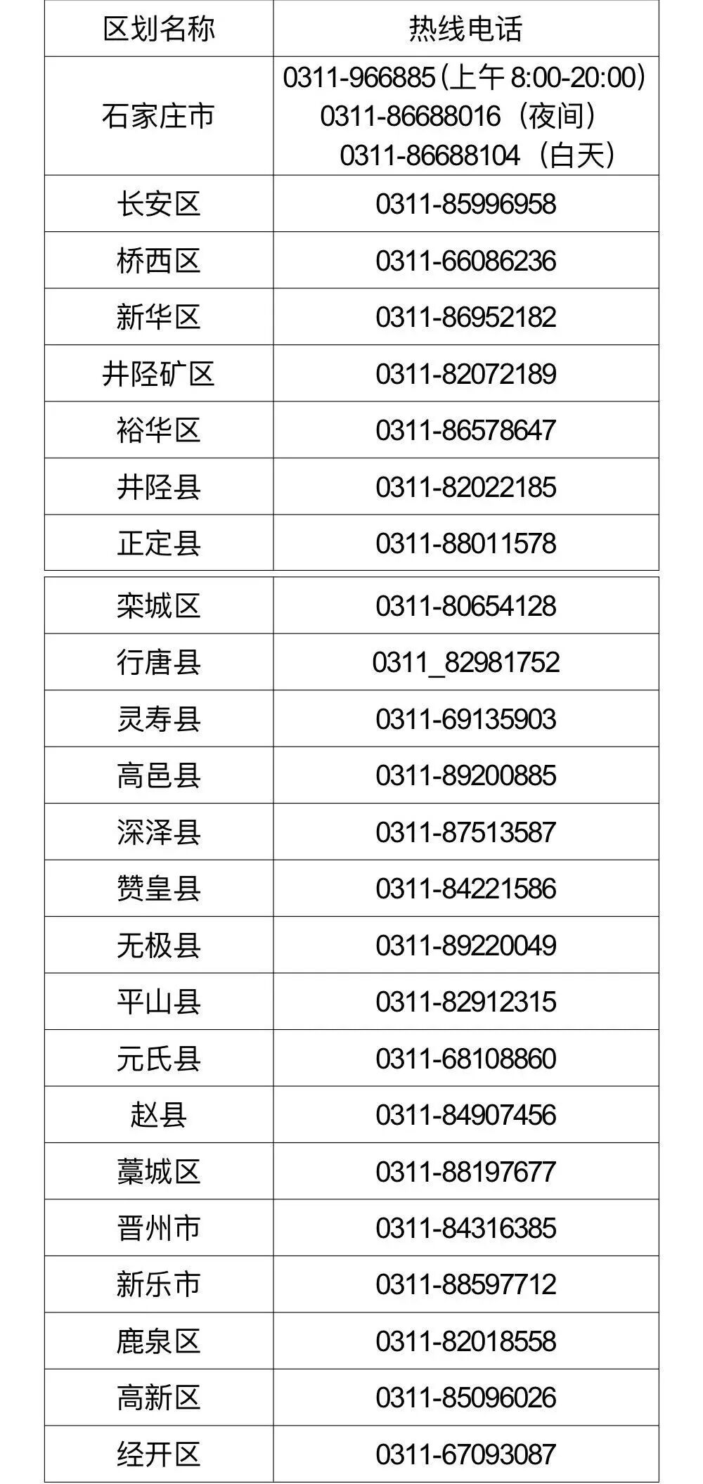 为切实做好我市向中度以上失能老年人消费券补贴发放工作,方便广大老年人及家属咨询政策细则、申领流程等相关事宜,畅通沟通渠道,提升服务质效,现将石家庄市民政局及各县区民政局老年人消费券补贴相关咨询服务电话公布如下,如有任何疑问,可在工作日上午9:00-12:00、下午1:00-5:00,向属地民政部门进行咨询: