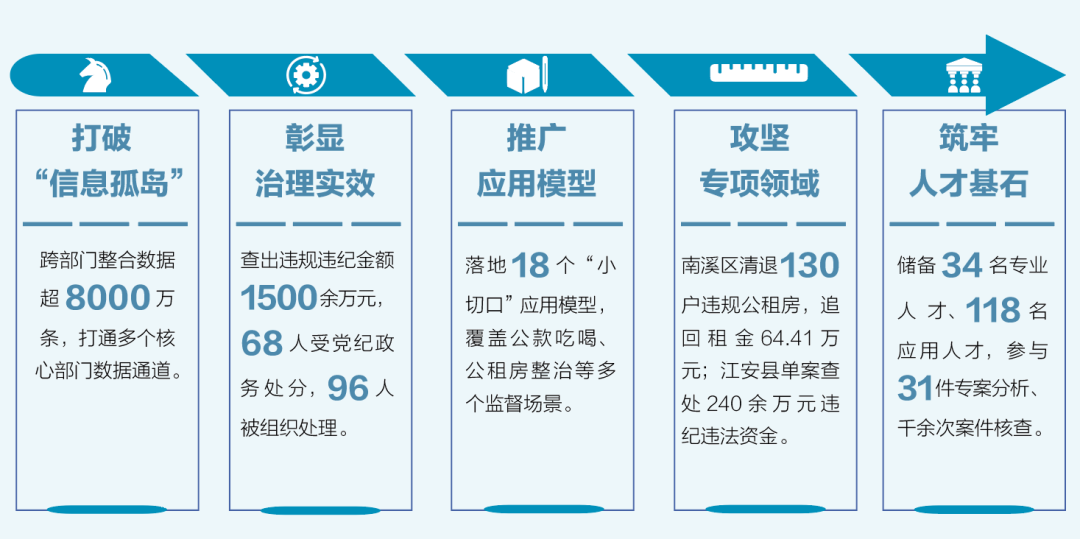 其中,屏山县通过监督模型快速查处了多起重复套取“厕所革命”补助款的案件。江安县违规吃喝问题线索的平均办理时间,从20多天压缩到4天左右。南溪区则针对公租房“收入超标”“长期空置”等乱象构建了大数据监督模型,精准清退130户违规公租房租户,追回欠缴租金64.41万元,还让64户符合条件的家庭顺利入住。