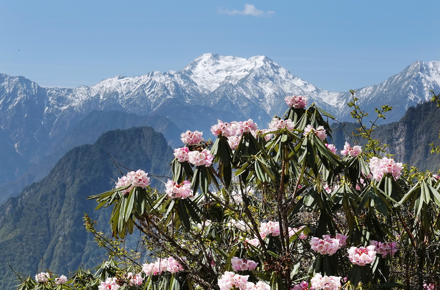 百年古木高山杜鹃与巍峨雪山同框 胡宇摄