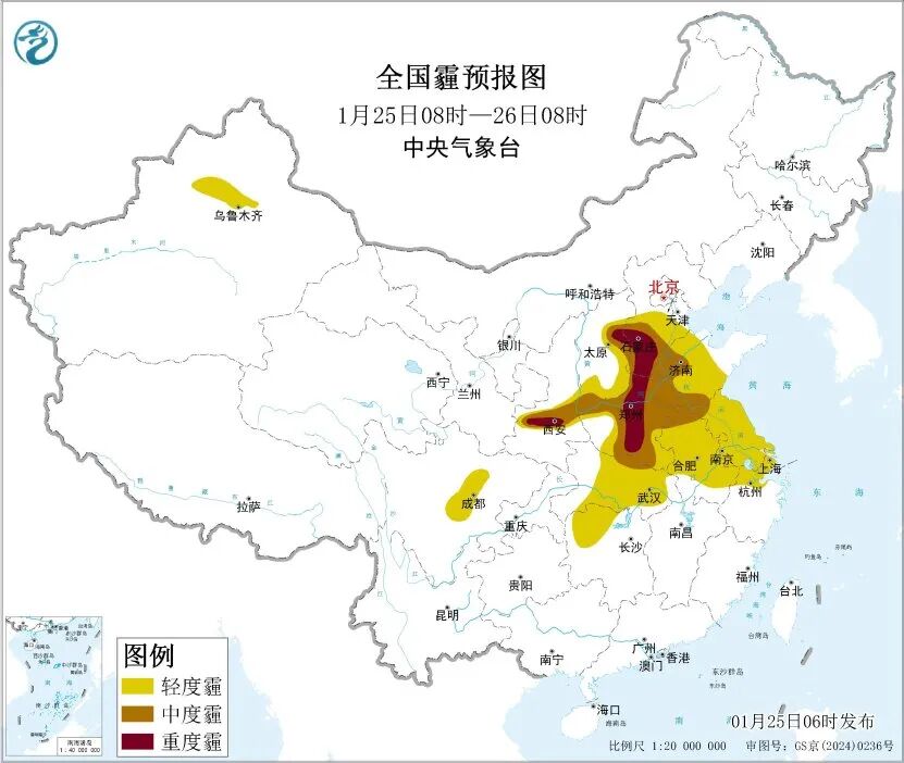 1月25日,受弱冷空气影响,华北中部、黄淮中部等地的霾天气减弱,华北南部、黄淮西部、江汉等地霾天气仍有轻至中度霾,局地重度霾。26日至28日,华北中南部、黄淮中西部、汾渭平原等地大气扩散条件较差,有轻至中度霾,部分地区重度霾。29日起,受冷空气和降水共同影响,霾天气逐渐减弱消散。