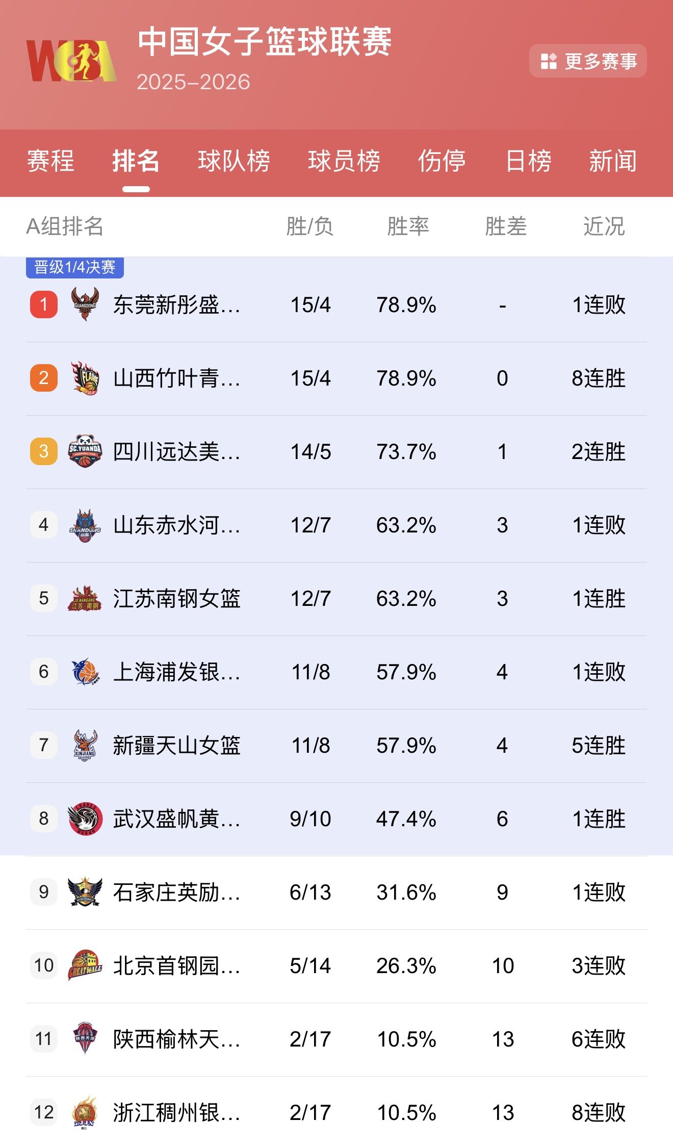 1月25日,WCBA常规赛第十四轮补赛进行,四川蜀道远达女篮客场挑战上海浦发银行女篮。此役上海女篮遭遇重创,核心内线刘禹彤因国家队集训缺席,核心外线钱内迪·卡特伤停,实力受损明显。四川女篮抓住机会,以105比82强势取胜,赛后暂列积分榜第三,紧随其后的江苏女篮与山东女篮积分咬得甚紧,后续赛程的直接对话将左右排名格局。