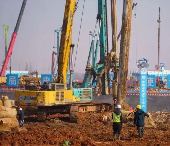 目前,现场集结了1000余名施工及管理人员,配备各类桩机50余台、挖机与推土机等辅助设备130余台,各方力量协同作战,全力冲刺桩基工程关键节点。