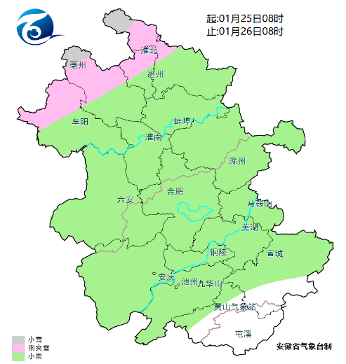 据安徽省气象台最新预报,25日至27日我省自北向南有一次降水过程,其中25日夜里淮河以北部分地区有小雨转雨夹雪或小雪,26日淮河以北东部有雨夹雪,27日皖南山区有雨夹雪或小雪。30日前后我省还有一次弱雨雪天气过程。