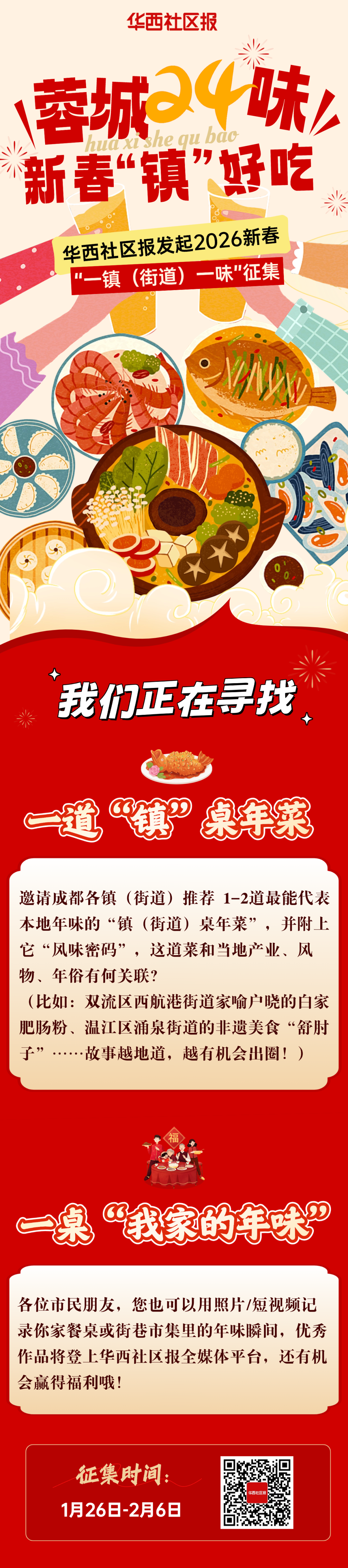 你不仅能推荐、参与票选,选出你心中的年味,系列融媒体栏目《镇好吃》《镇好逛》《镇有货》还将带你深度打卡,沉浸式体验镇街魅力。最终发布的《蓉城24味 新春“镇”好吃指南》,内含人气榜单、逛吃线路,成为你未来一年探索成都镇街的实用宝典。