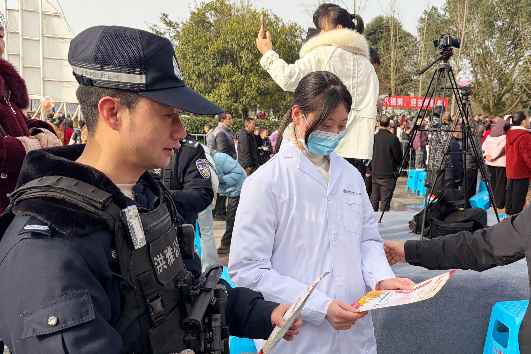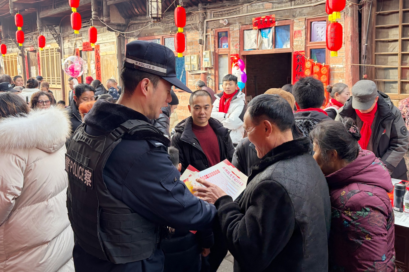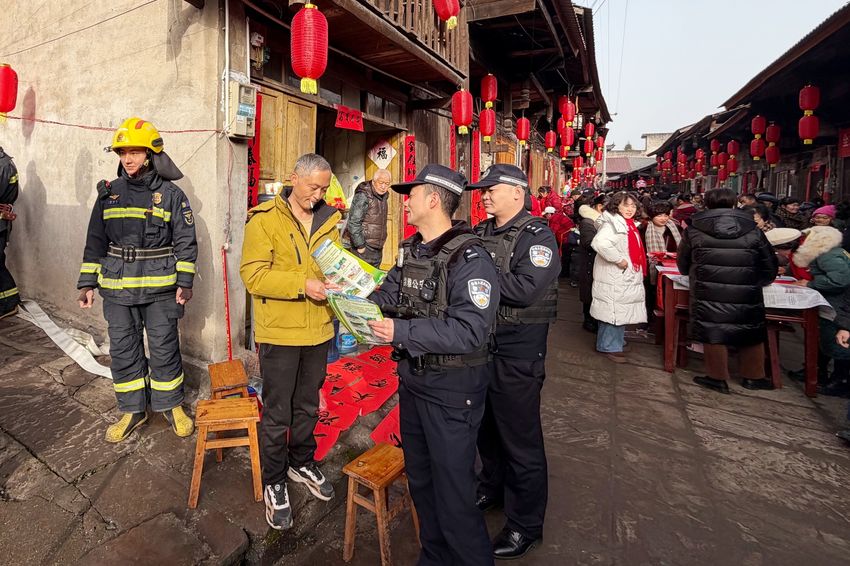 同时,派出所民警还利用群众聚集的有利时机,同步开展冬季安全宣传。民警们手持便携式扩音器,结合腊八节家中用电用火增多的情况,在现场穿插讲解安全取暖、规范用电、初期火灾扑救等实用知识。执勤民警还走进年货摊位、老街店铺,发放印有防火、防盗、反诈提示的宣传单,并重点提醒商户注意用电安全,切勿占用消防通道。