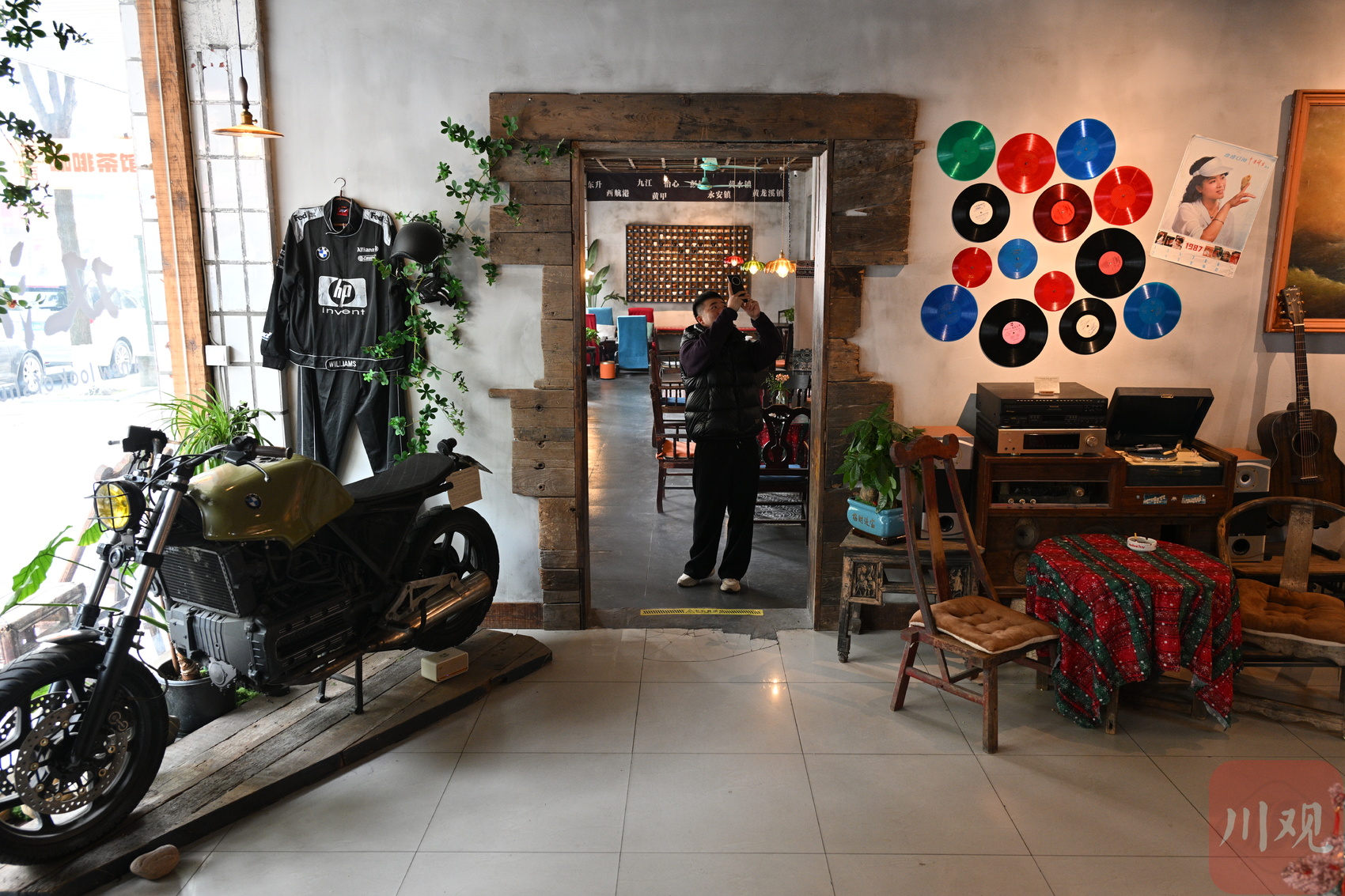 “老屋曾是老客运中心的售票厅、档案室和办公室,改造时仅修复了破损部分,增添老书架、旧桌椅等适配物件,兼顾沉静感与实用性。”咖啡茶馆主理人夏云川介绍,每一件旧物都是故事的容器。他耗时七八年收集了 3000 余件老物件,希望让咖啡馆成为连接时光的纽带。如今,不少周边居民常来此点一杯手冲咖啡,翻看旧书籍,或对着老式相机陷入回忆。