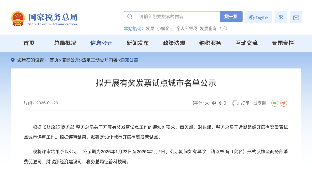 近日,商务部、财政部、国家税务总局对外公示拟开展有奖发票试点城市名单,泸州成为全国50个入选城市之一。