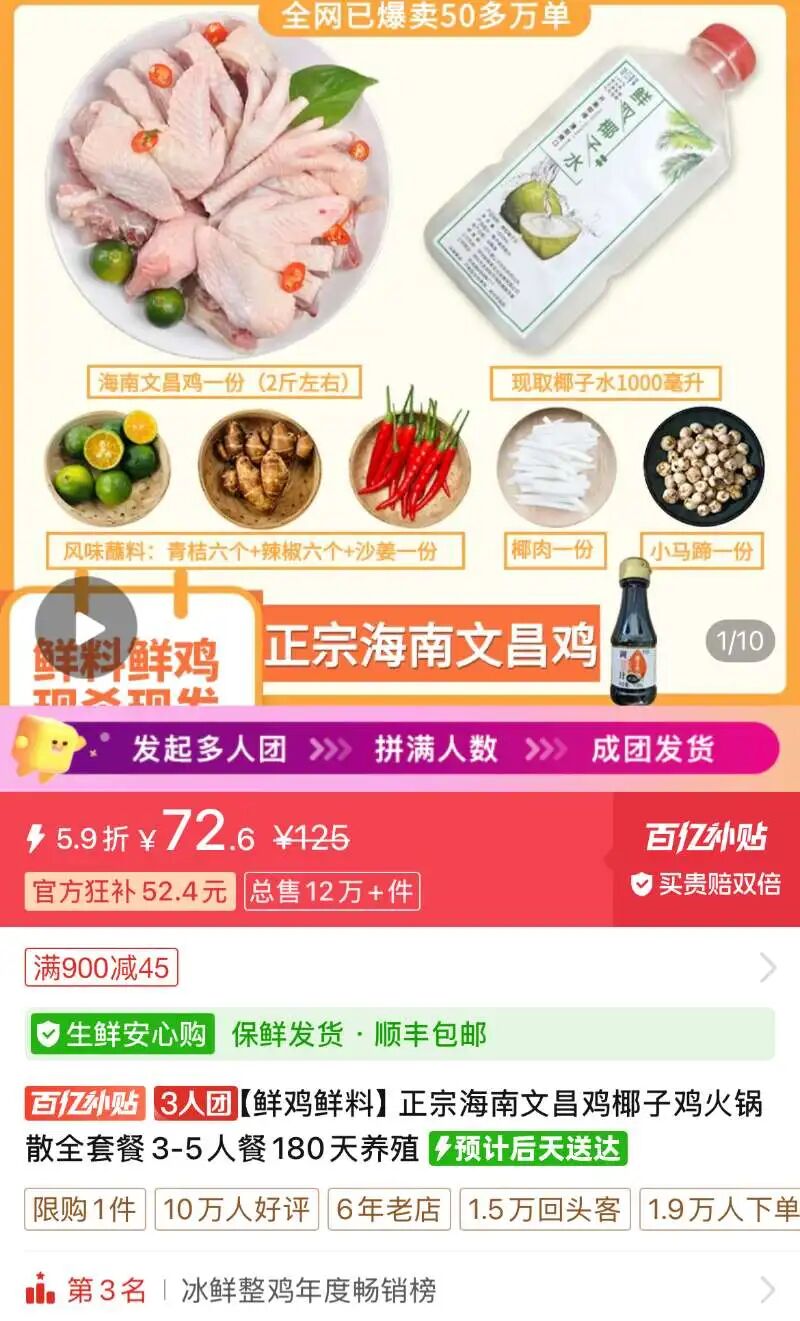 “我们的鸡都是吃椰肉长大的。”32岁的余华说起自家的椰子鸡,语气里满是笃定和自豪。这位来自广东汕尾的创业者,在椰子鸡行业深耕十年,从深圳餐饮店的供应商,成长为拼多多的头部商家,年销近20万单的成绩背后,是对海南本味的极致坚守。