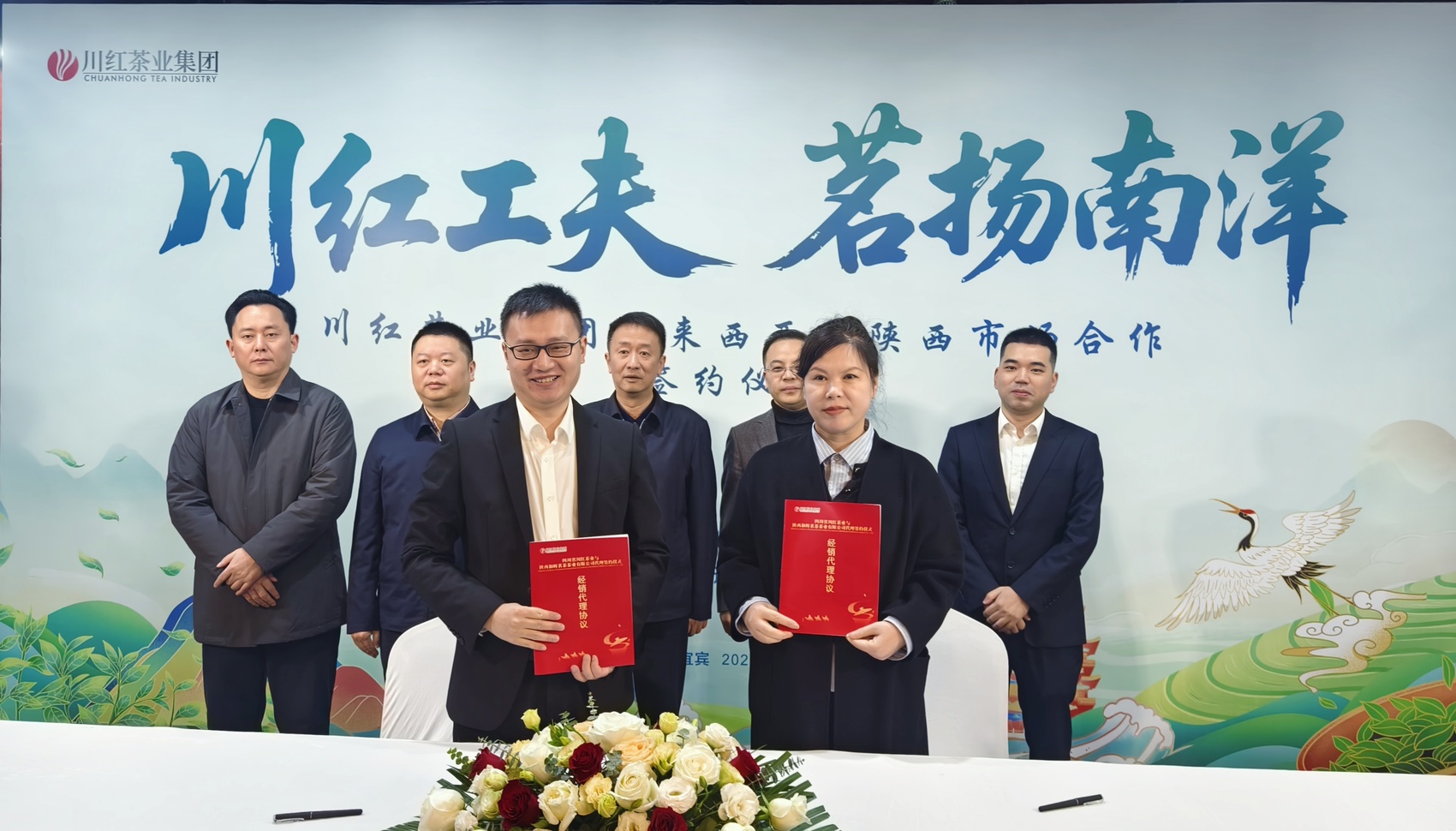 当日,四川红茶链主企业、五粮液集团旗下四川省川红茶业集团有限公司(下称“川红集团”),与马来西亚知名茶叶经销商签署代理合作协议。这意味着川红工夫红茶首次叩开东盟市场大门。同日,川红集团与西安核心客户达成经销合作,以国内市场增量为支撑,川品闯市场的主线愈发清晰。