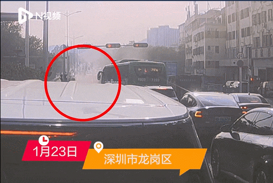 从现场监控视频可以看到,当天下午4点左右,赖明辉驾驶公交车行驶到龙岗区坪地街道高中园路段等红绿灯的时,突然看到前方一辆人货车突然冒起浓烟着火了,货车司机下车拿着小型灭火器灭火,但没有将明火扑灭,赖明辉见状第一时间将车辆打开双闪,拿着灭火器救火。