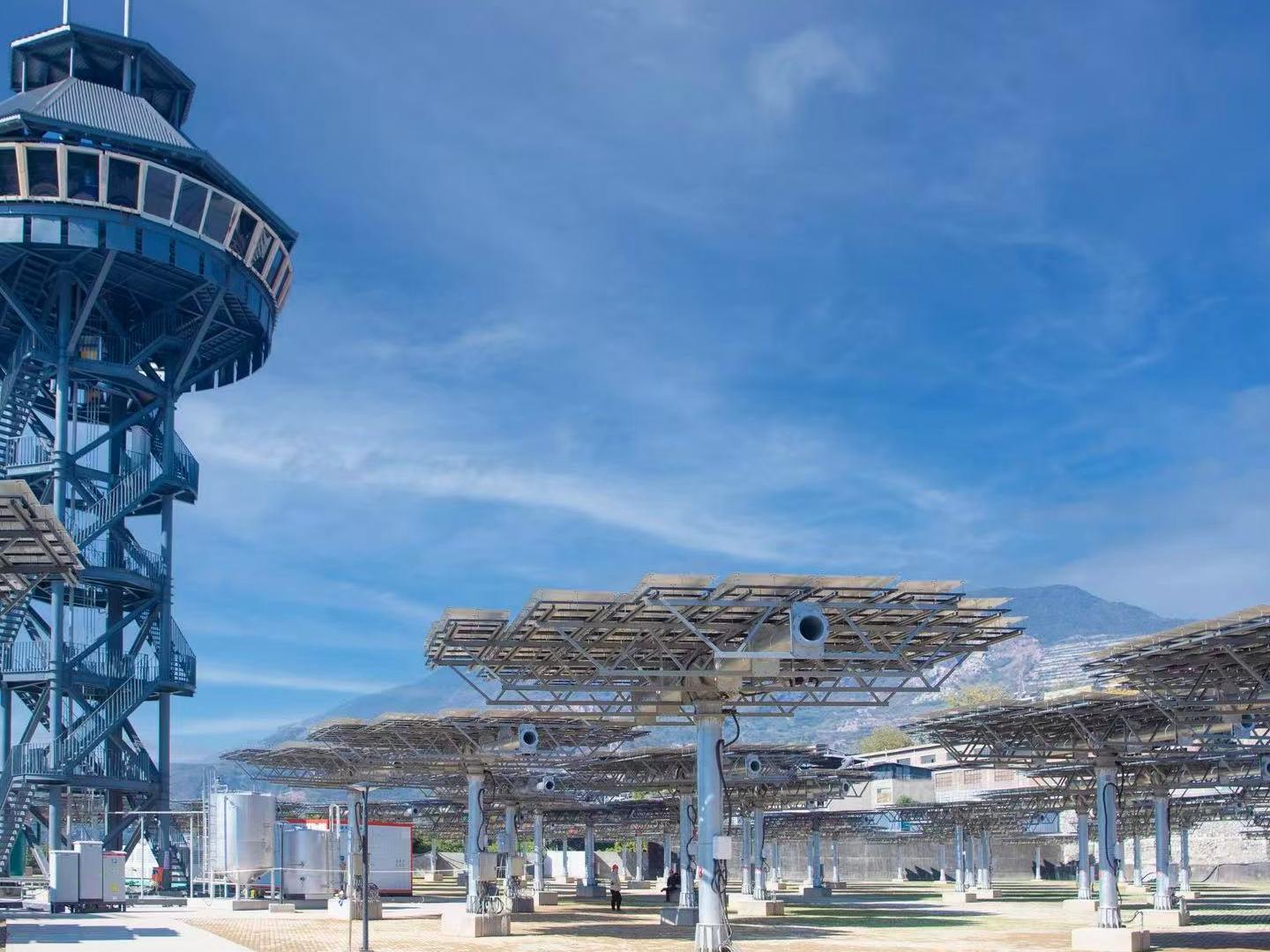一键按下,144个定日镜缓缓转动,阳光被集中反射到聚光反射塔,经过化学反应,氢气从水里被分解出来,像科幻电影中的场景。