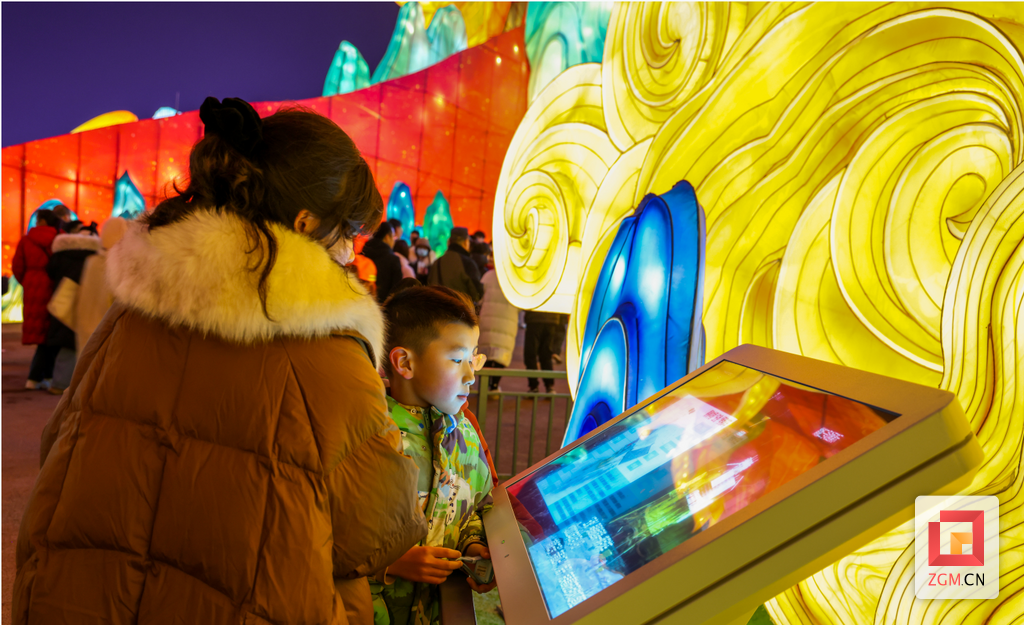 “来和我对话吧!”在“年年招财”灯组前,高达22米的年兽不仅能眨眼摆尾,还能通过内置的语音识别、自然语言处理系统的AI系统与游客进行实时趣味对话,仿佛开启了一场与神话生物的对话;“生生不息”灯树采用“原画师+AI”联合设计,结合光影感应技术,游客触摸灯树即可触发色彩变换,真正实现了人与灯的“肢体对话”。
