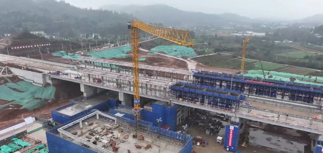 主体结构的全面封顶,是大足石刻站建设的重要里程碑,更是大足推进交通强国、文化强国建设的重要成果。中铁建工成渝中线大足石刻站项目总工程师谈亚庆说,接下来将全面推进钢结构、幕墙、机电安装及装饰装修、设备调试等后续工程,预计今年大足石刻站将全面完工,具备静态验收条件。