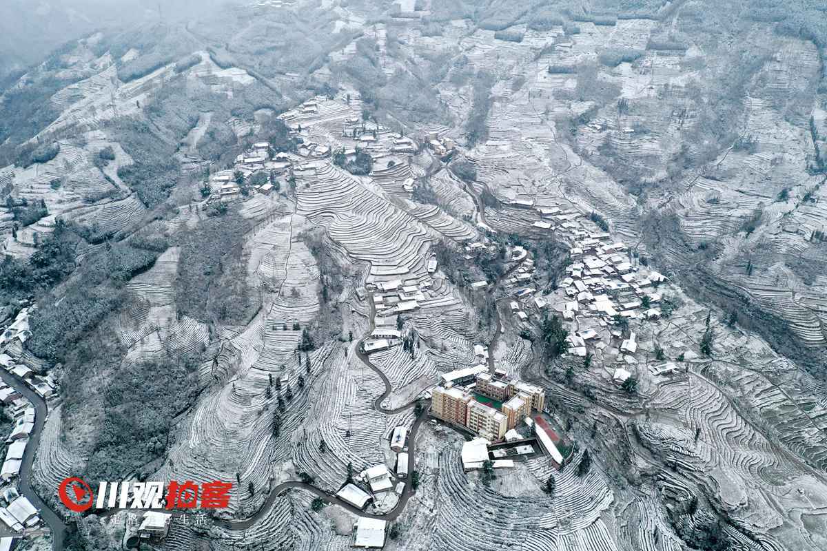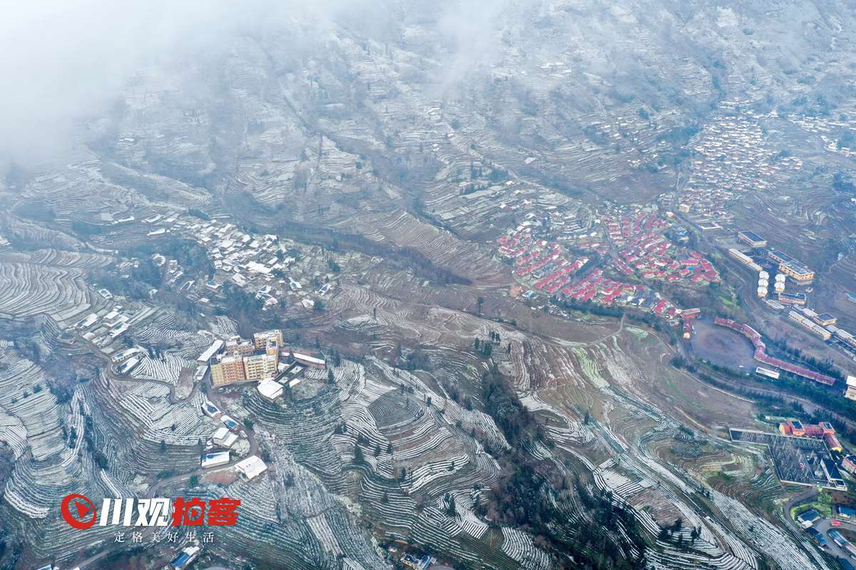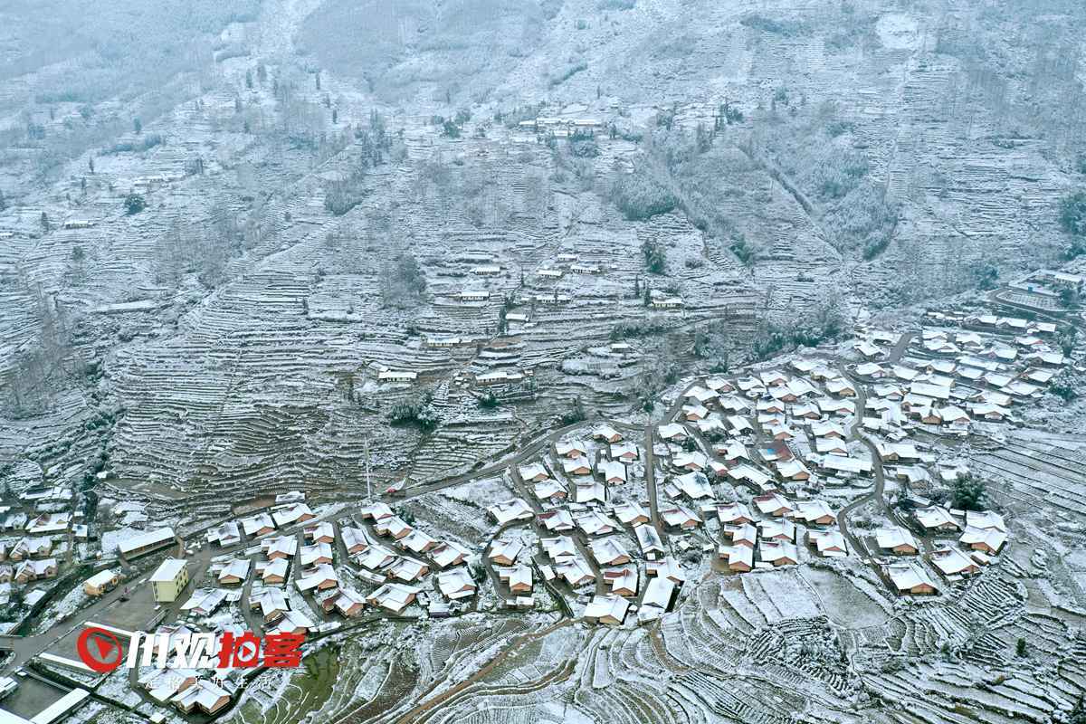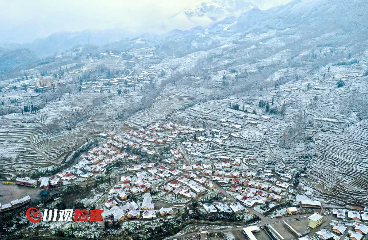 2021年1月13日,雪后的马边县彝族自治县烟峰千户彝寨分外妖娆。 烟峰是彝族聚居的村寨,位于乐山市马边彝族自治县西南部,距县城25公里。是个历史悠久、人杰地灵、风光秀丽的“世外桃源”。