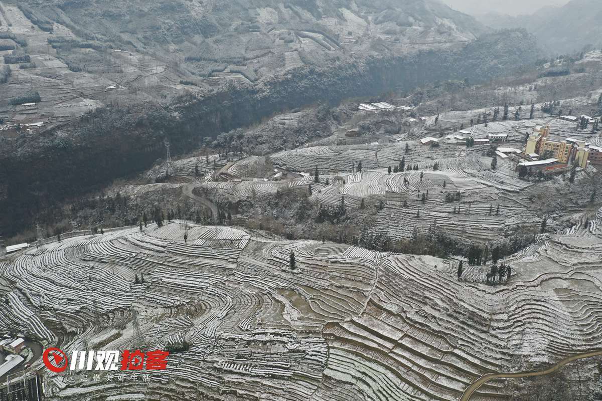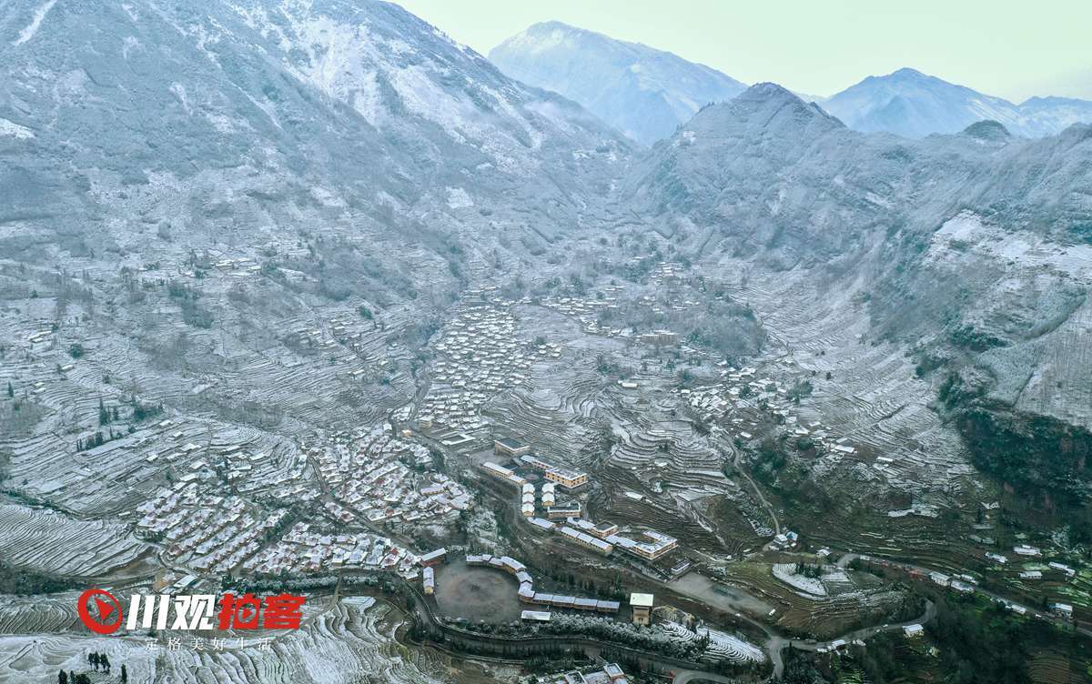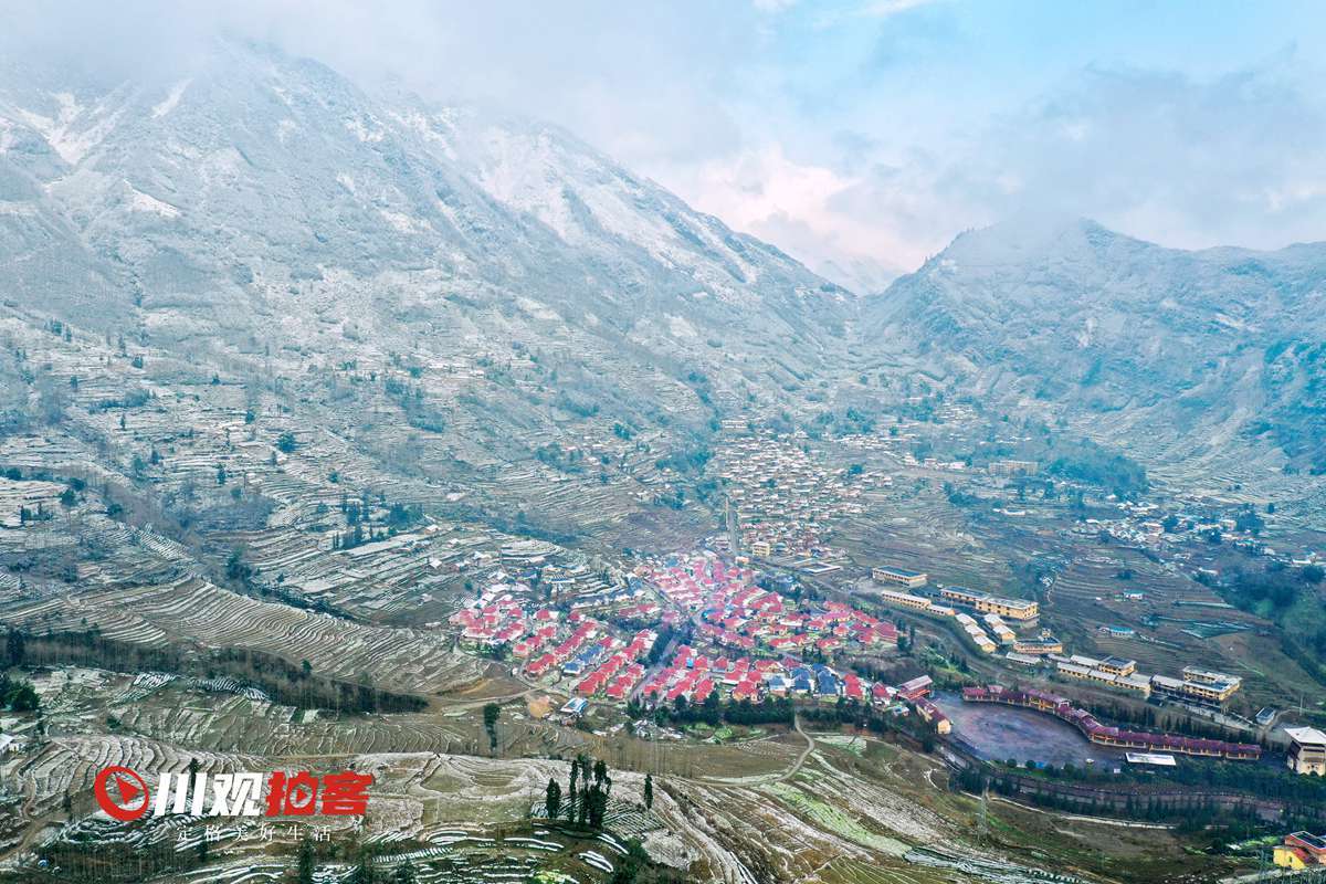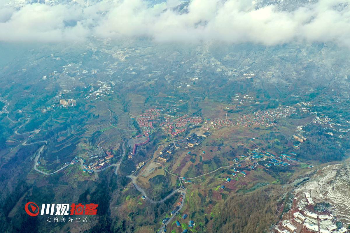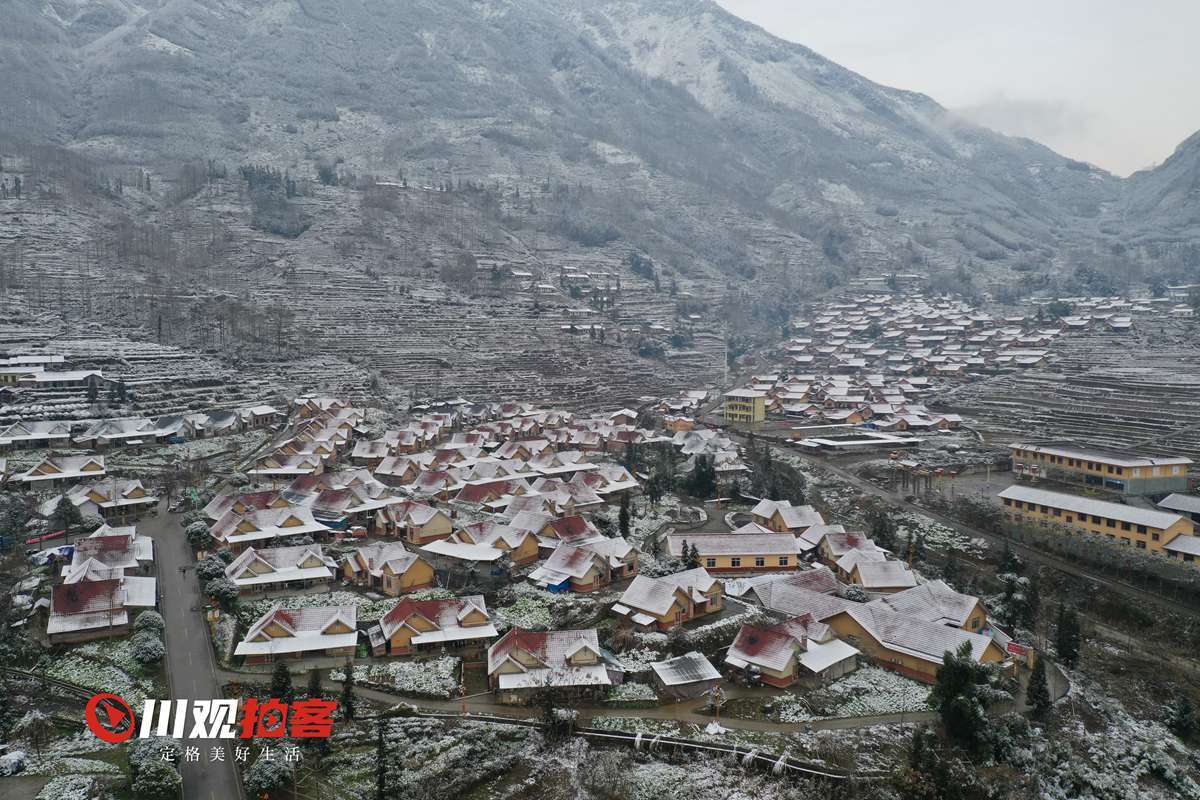 2021年1月13日,雪后的马边县彝族自治县烟峰千户彝寨分外妖娆。 烟峰是彝族聚居的村寨,位于乐山市马边彝族自治县西南部,距县城25公里。是个历史悠久、人杰地灵、风光秀丽的“世外桃源”。
