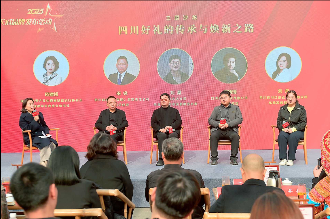 品牌的全球化离不开独特文化的根基。在《四川好礼的传承与焕新之路》主题沙龙中,成都新消费产业生态圈联盟执行秘书长、成都零售商协会秘书长欧建瓴与来自剑南春、荣县土陶、润兆渔业、川红茶业的四位嘉宾展开对话。与会嘉宾一致认为,优秀的四川伴手礼应超越“特产”概念,深度融合巴蜀文化,成为传递四川品质与精神的名片。