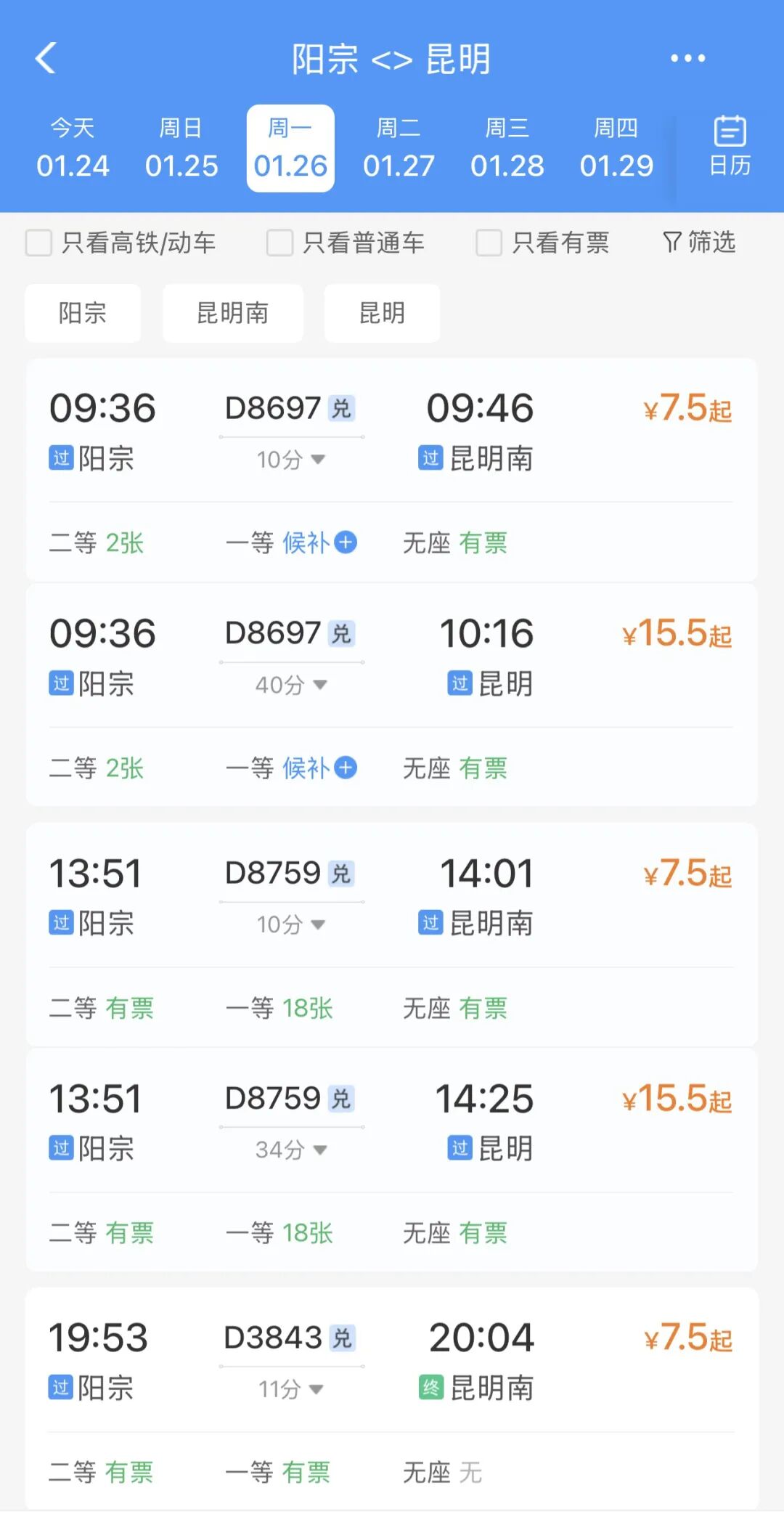 车站开办客运业务后,阳宗至昆明南站最快仅需10分钟,至昆明站约35分钟,至红河站约1.5小时,至广州南站约8.5小时。