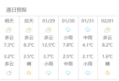 29日(周四):多云到阴,4~11℃,东北风2~3级;