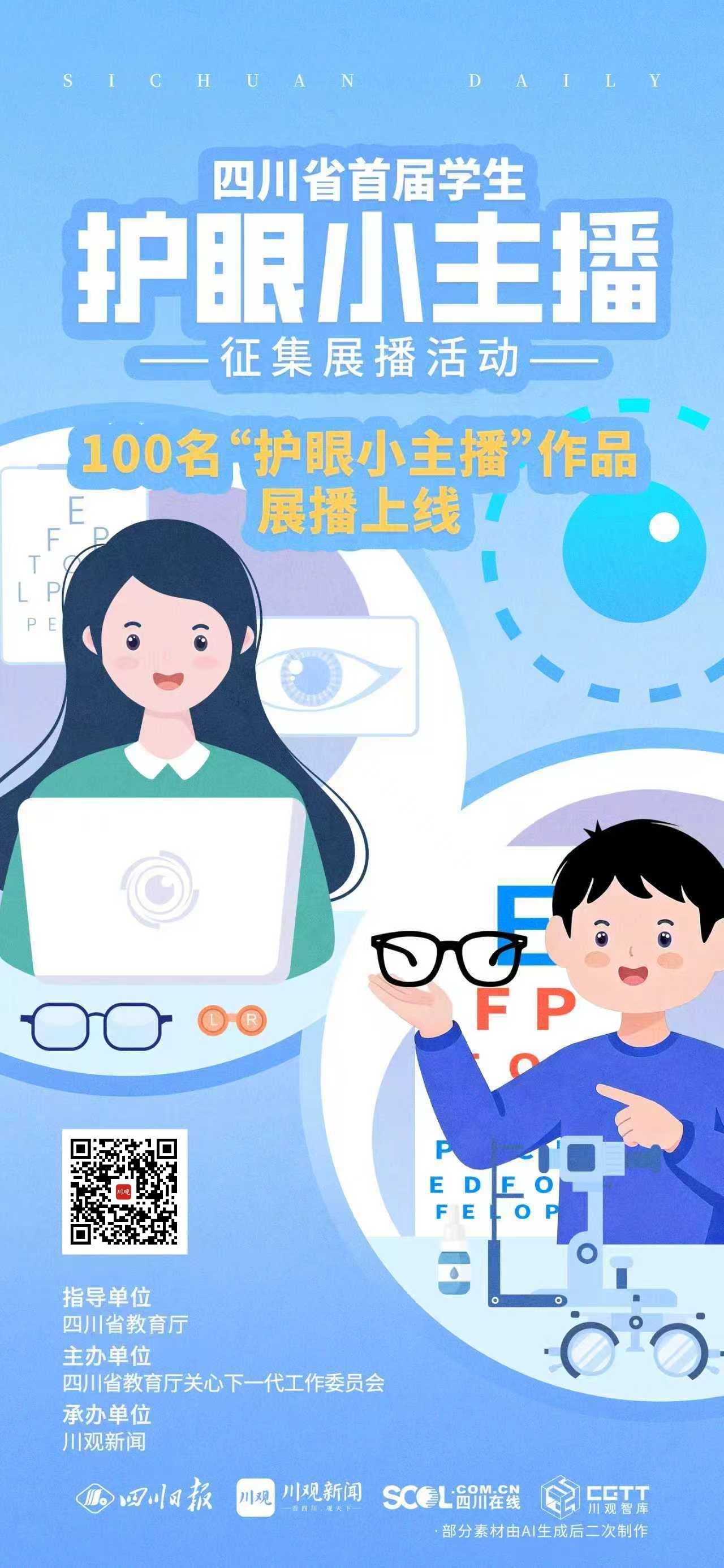 1月27日,由四川省教育厅指导、四川省教育厅关心下一代工作委员会主办,川观新闻承办的四川省首届学生“护眼小主播”征集展播活动开始云展播了,欢迎广大网友为你喜欢的小主播点赞。