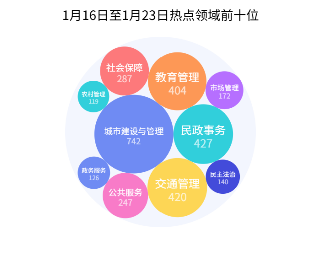 网民留言领域前十分别为城市建设与管理742件、民政事务427件、交通管理420件、教育管理404件、社会保障287件、公共服务247件、市场管理172件、民主法治140件、政务服务126件、农村管理119件。