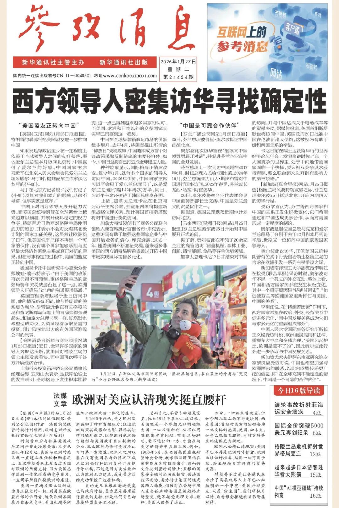今日出版的《参考消息》数字报,五大看点不容错过。