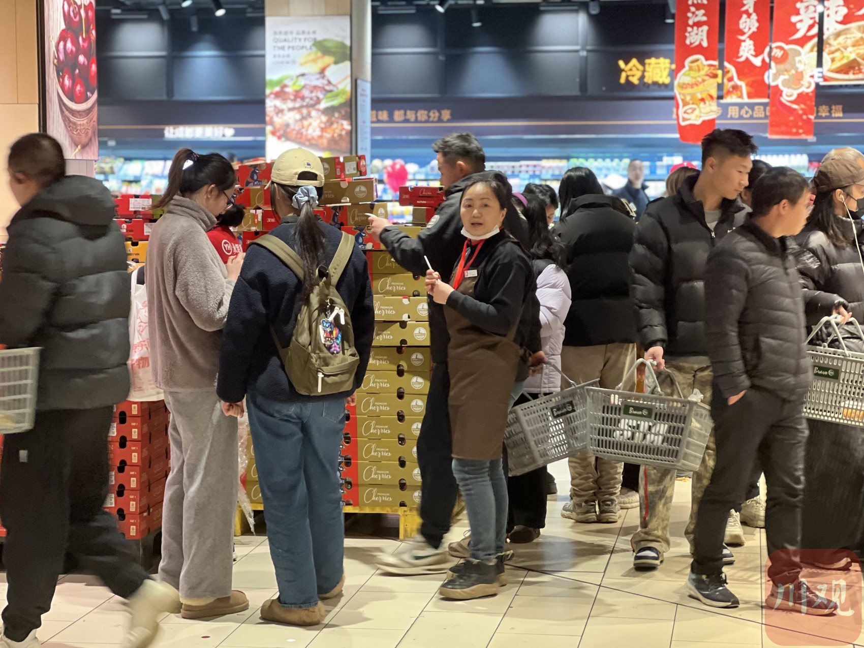 “扫码领券!2J车厘子90元5斤。”1月24日晚,永辉超市(科华王府井店)水果区域,在工作人员的卖力吆喝下,不少消费者凑上前了解。